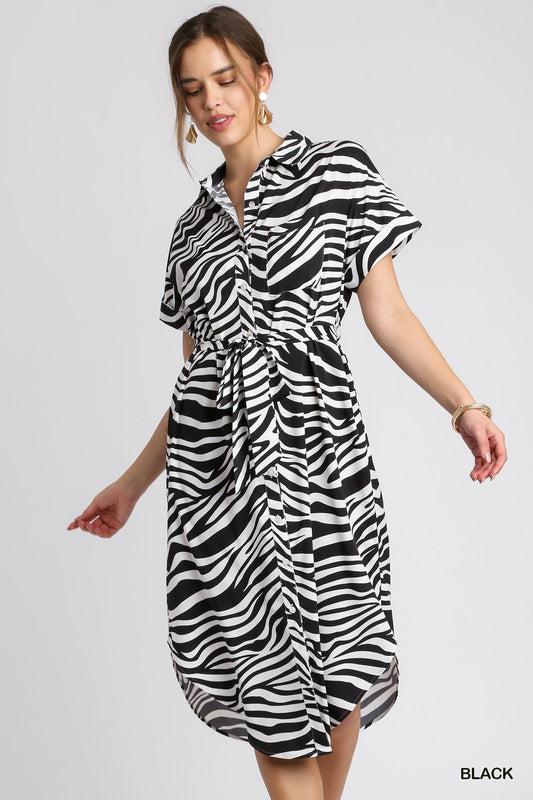 Umgee - Dress - Zebra Print Button Down High Low Midi Shirt Dress