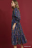Umgee - Dress - Floral Print Button-Front Midi - Navy