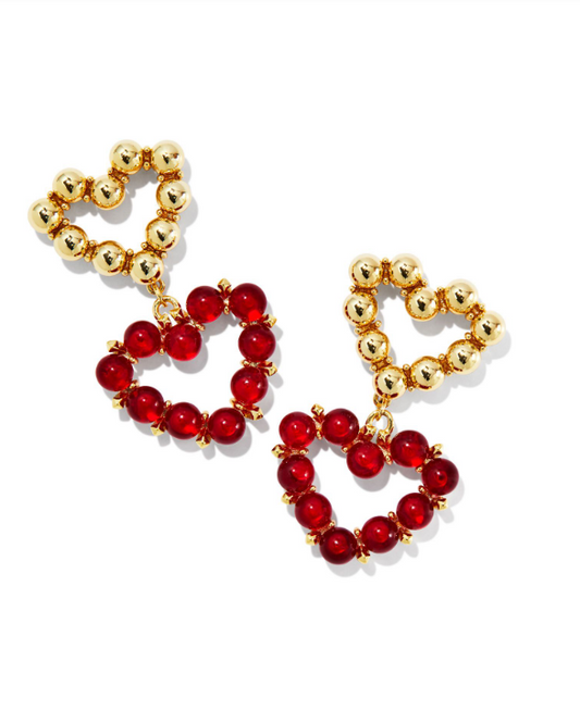 Kendra Scott - Ashton Gold Heart Drop Earrings - Red Glass