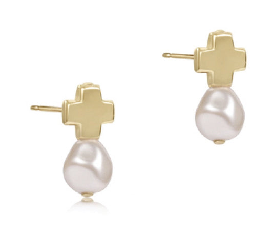 Enewton - Signature Cross Gold Stud - Pearl