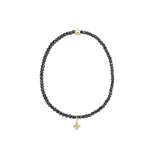 Enewton - Faceted Hematite 2mm Bead Bracelet - Signature Cross Gold Charm