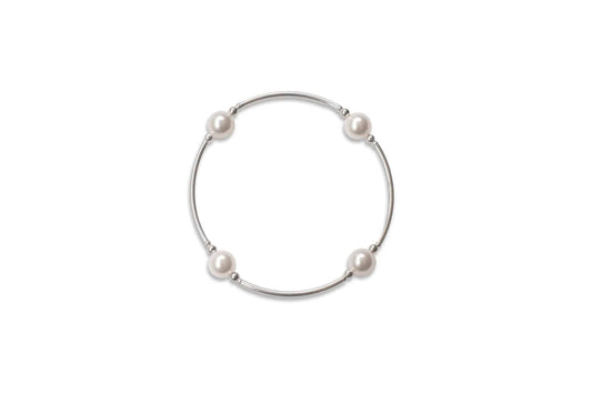 8MM White Pearl Blessing Bracelet With Sterling SIlver Links
