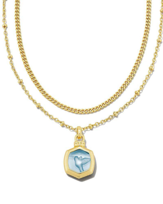 Kendra Scott - Davie Intaglio Gold Multi Strand Necklace - Light Sky Blue Glass