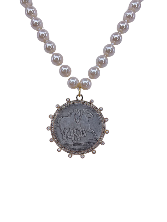 Erin Knight - Necklace - Vintage Pearls with Sterling Horse Coin