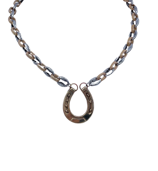 Erin Knight - Necklace - Mixed Metal Chain With Vintage Horseshoe Pendant