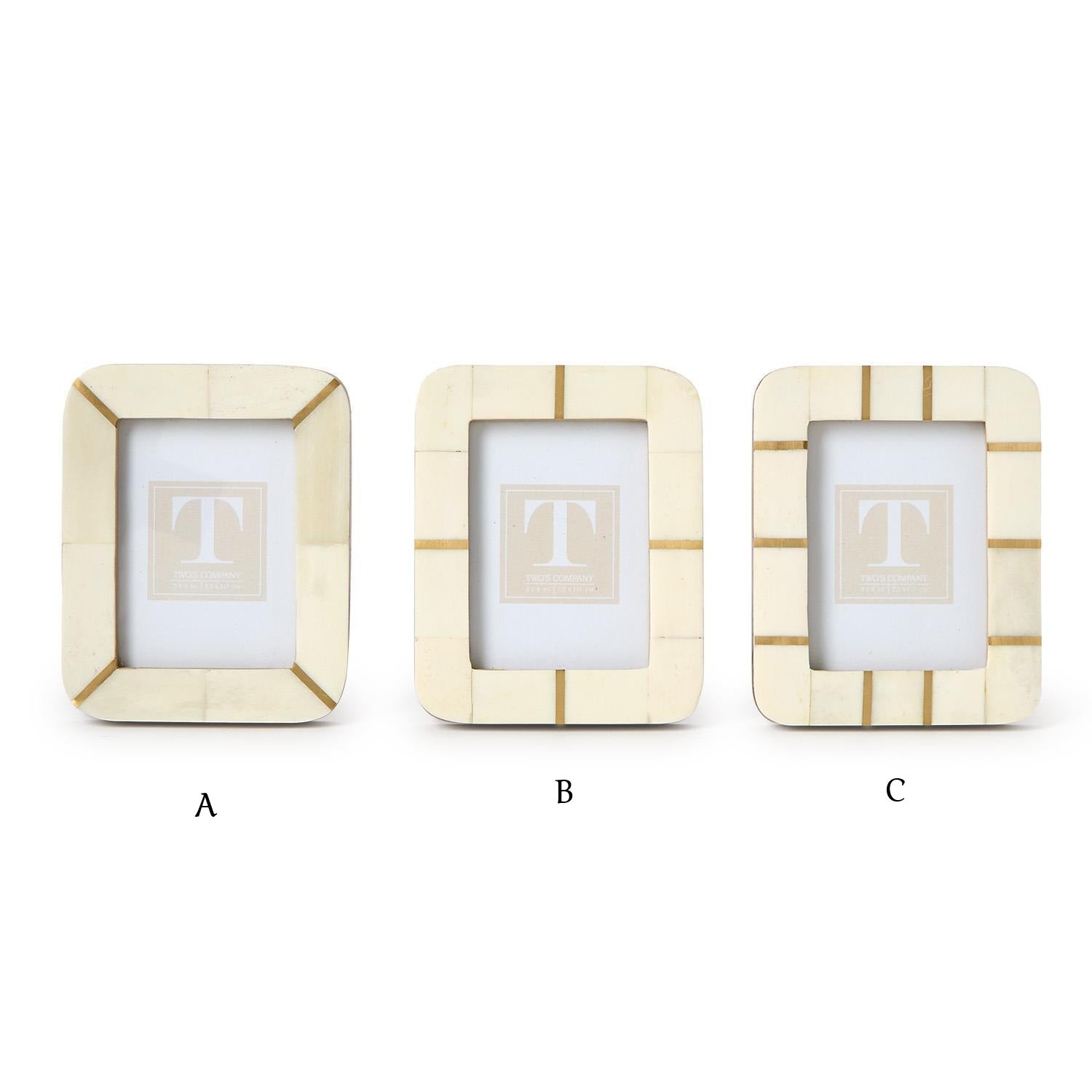 Discover the exquisite charm of the 3x4 Mini Photo Frame - Geometric, a stunning addition to your home decor. This frame is meticulously crafted from a unique blend of bone and brass, ensuring that each piece is a one-of-a-kind work of art. With its versatile design, you can display your cherished memories either vertically or horizontally, making it a perfect fit for any space. The elegant geometric cut adds a sophisticated touch, enhancing the aesthetic of your room while showcasing your favorite photos in style. Measuring 4 inches in width and 5 inches in height, this frame is ideal for those who appreciate the finer things in life. Transform your living space with the 3x4 Mini Photo Frame - Geometric and let your memories shine.