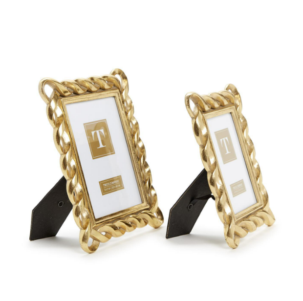 The 4x6 or 5x7 Frame - Gold Ribbon are an exquisite combination of elegance and practicality, designed to beautifully display your treasured memories. Available in two sizes, 4x6 or 5x7 Frame - Gold Ribbon, these frames are crafted from high-quality resin and glass, ensuring durability while enhancing your decor with a touch of luxury. The intricate gold ribbon motif adds a sophisticated accent, making these frames perfect for any room. Ideal as a thoughtful gift for weddings, anniversaries, birthdays, or any special occasion, these frames can be displayed either horizontally or vertically. Choose the 4x6 or 5x7 Frame - Gold Ribbon to showcase your favorite moments in style.