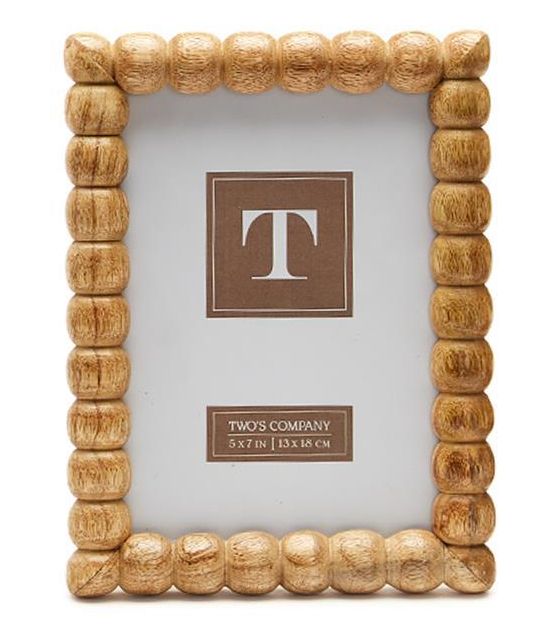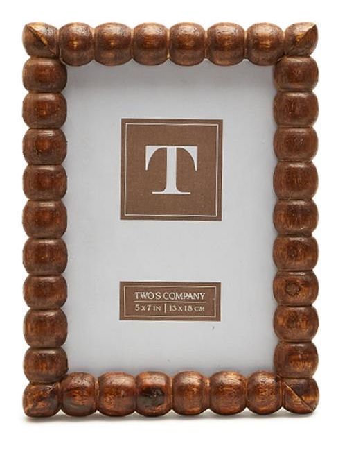 Introducing the Two's Company Hand Carved Bobbin Frame, a stunning addition to your decor. Crafted from mango wood, a sustainable and eco-friendly resource, each frame exudes natural beauty and rustic charm. Available in both Dark Brown and Natural colors, and in sizes of 4X6 and 5x7, this versatile frame stands horizontally or vertically to perfectly showcase your cherished memories. Elevate your home decor with the timeless elegance of the Two's Company Hand Carved Bobbin Frame.