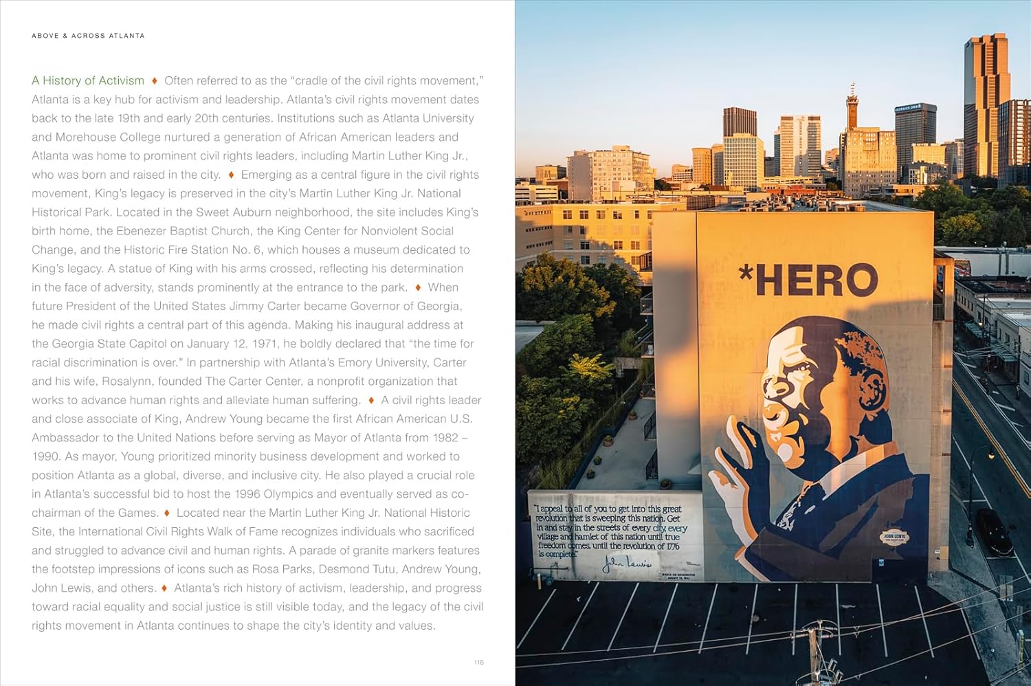 "Above and Across Atlanta" is a captivating photography book that showcases the breathtaking beauty of Atlanta from a unique aerial perspective. Through the lens of photographer Luis Gaud, this collection highlights the city's diverse architecture, vibrant streets, and significant landmarks, all while capturing the essence of Atlanta across all four seasons. Readers will be drawn into stunning images of iconic sites such as Centennial Olympic Park, the Fox Theatre, the Martin Luther King Jr. National Historic Site, and the Georgia State Capitol, alongside hidden gems that reveal the city's charm. "Above and Across Atlanta" offers a fresh viewpoint of the urban landscape, making it an essential addition for anyone who appreciates the rich character and historical significance of this dynamic city.
