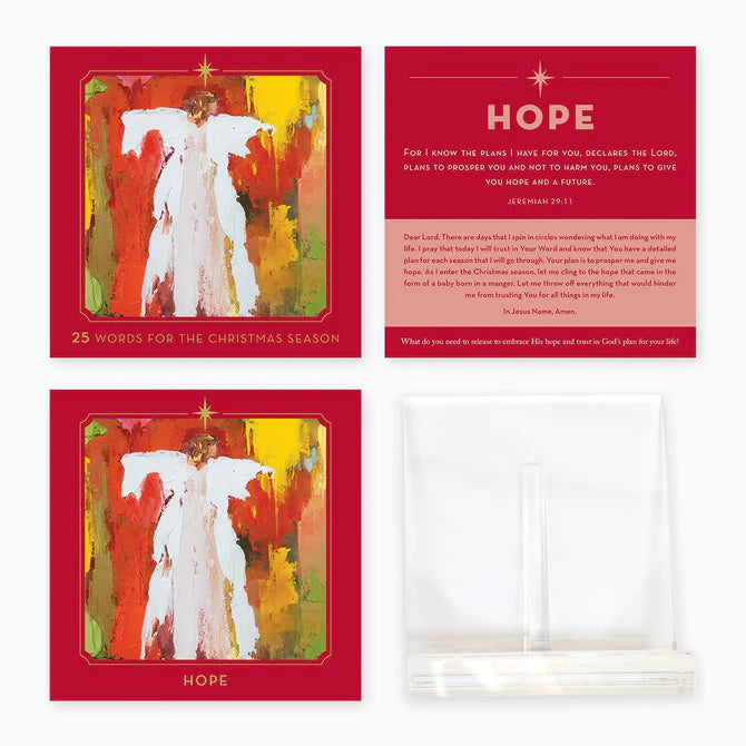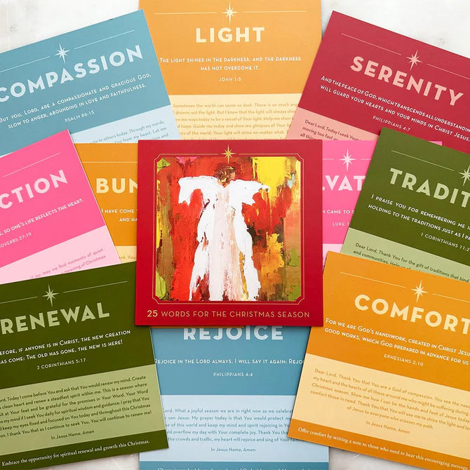 Anne Neilson - 25 Words For The Christmas Season is a delightful set of cards designed to help you embrace the true spirit of Christmas. Featuring new Angel artwork in vibrant colors, each 6x6 card includes a special word, scripture verse, and prayer reflection. Packaged in a cloth bag with an acrylic display stand, these cards make a thoughtful gift for the holiday season. Get your Anne Neilson - 25 Words For The Christmas Season today and spread the joy of Christmas!