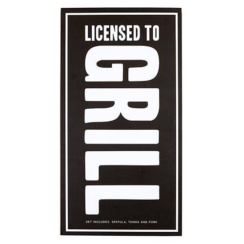 Give your grill master a gift they'll love! This barbeque grill set comes in masculine cardboard book box with a smokey recipe and finger licking' tools!
