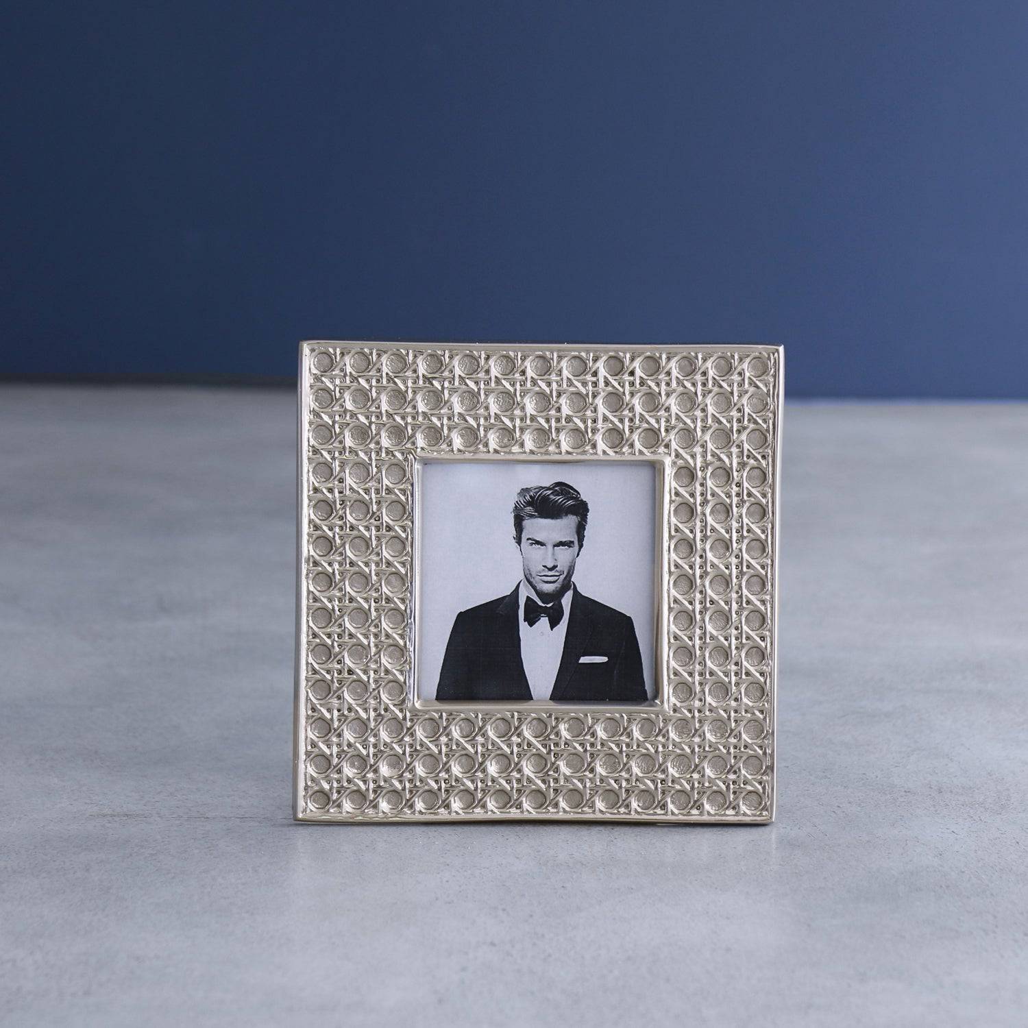 A small frame that's big on classic Rattan style! Beatriz Ball's shimmering FRAME Sierra Modern Rattan 3 x 3 (Gold) in a champagne gold-tone features a sumptuously textured rattan-inspired surface made fresh and new with a proprietary metallic finish. Designed to display a 3x3 inch photo, the handsome frame looks stunning on a desk, mantle, or table. The delightfully decorative piece adds a modern new edge to Beatriz Ball’s award-winning designs. A number one trend in decorating, Rattan has an ability to feel both contemporary and vintage at the same time and transcends all interior styles and trends. Stunning pieces, timeless and unique, this collection brings to market designs that have never been seen before. Beatriz Ball’s intensely handmade products use eco-friendly and sustainable materials and are crafted by artisans who trace a heritage of metalworking for generations. Made of a top quality, easy-care, aluminum alloy. Tarnish free!