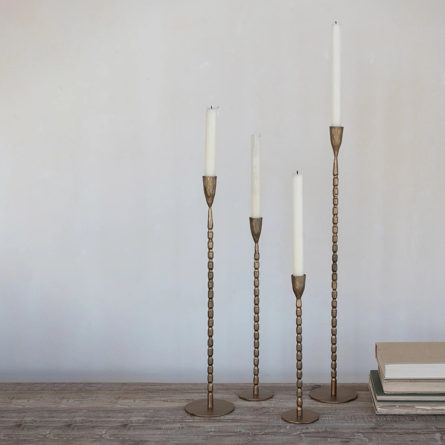 Enhance your home decor with our Candle - Taper Holder - Iron - Brass Finish, available in four distinct sizes: 3 inch Round x 11-3/4 inch H, 3 inch Round x 15-1/2 inch H, 4 inch Round x 19-1/2 inch H, and 4 inch Round x 23-1/2 inch H. Each hand-forged cast iron taper holder features a stunning brass finish that adds a touch of elegance to any setting. Perfect for creating a warm ambiance, these taper holders are ideal for dining tables, mantels, or special occasions. Choose the size that best fits your space and enjoy the timeless beauty of this exquisite Candle - Taper Holder - Iron - Brass Finish.