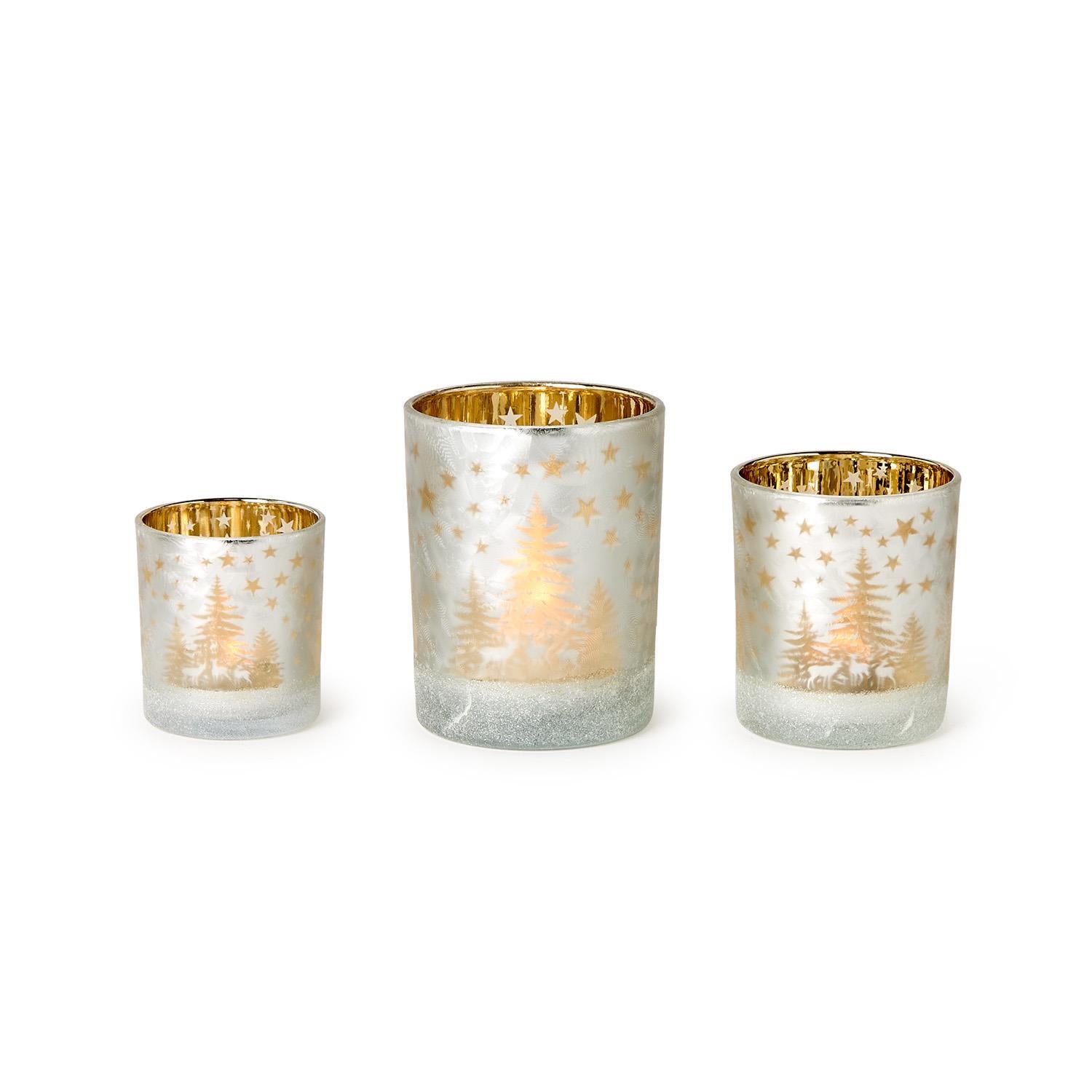 Transform your home into a winter wonderland with the Candleholders - Tealight Frosted Forest Whimsy. This enchanting set features three flameless, flickering wax tree decorations in varying sizes, each beautifully textured to capture the essence of a serene winter forest scene. Accented with a touch of glitter along the base, these battery-operated trees provide the warm glow of candlelight without the risks associated with open flames. Ideal for enhancing mantels, holiday centerpieces, or festive displays, the Candleholders - Tealight Frosted Forest Whimsy also serve as charming holders for tea lights, votive candles, or even as vases for fresh flowers or greenery, making them a versatile addition to your seasonal decor.
