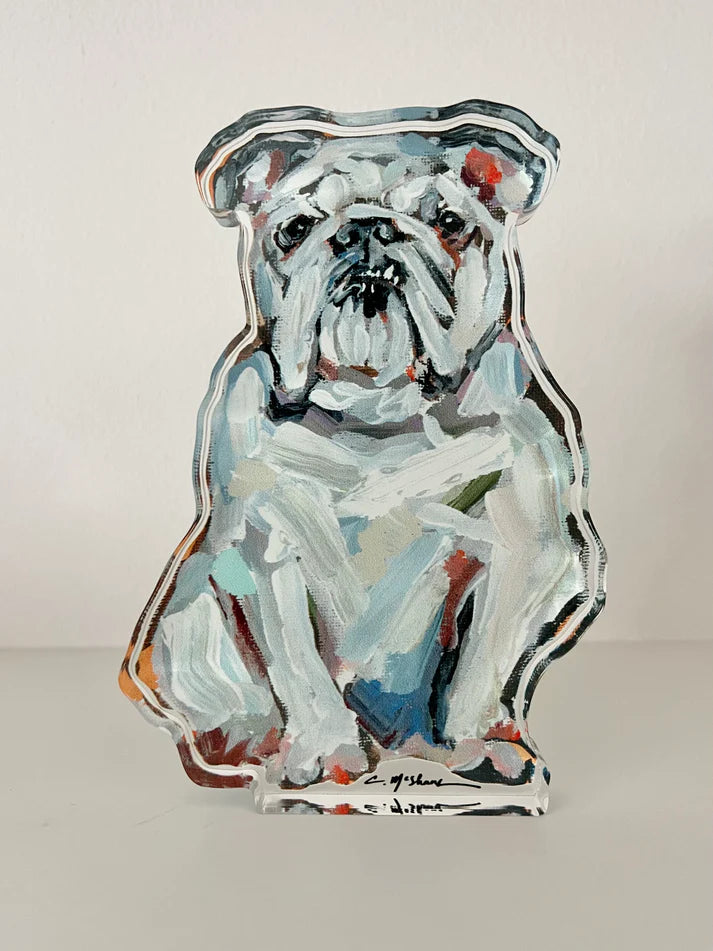 This charming painting features a white English Bulldog, beautifully rendered on an acrylic block, perfect for tabletop display. Could he be UGA? Measuring approximately 4.5 x 6.5 inches, this artwork captures the festive spirit and adds a delightful touch to any holiday decor. The art is securely affixed to the acrylic block, ensuring durability and a polished look. Chelsea McShane - Acrylic Block - English Bulldog - White is a wonderful addition to your seasonal collection, making it an ideal gift or a personal keepsake. Chelsea McShane - Acrylic Block - English Bulldog - White will surely bring joy and warmth to your home during any season.