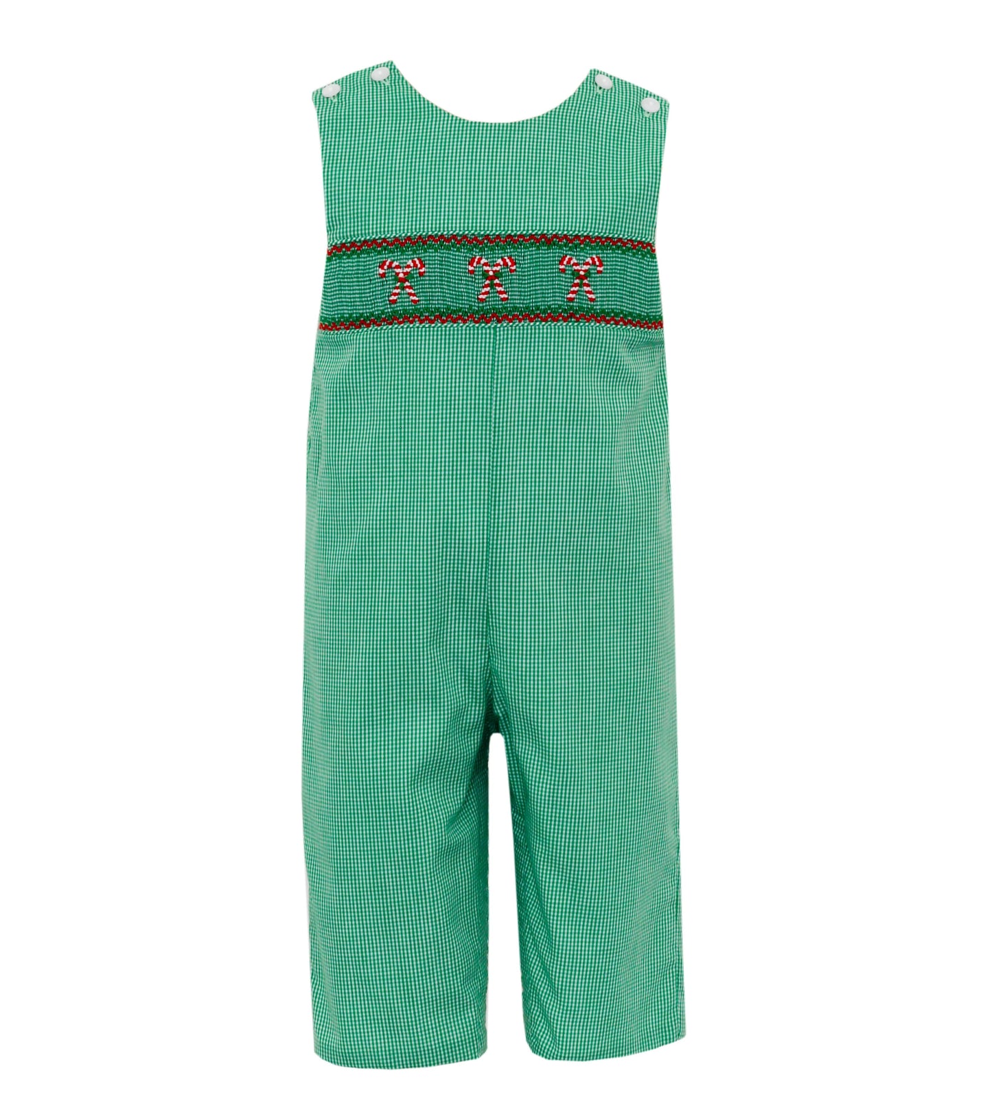 Boy's Candy Cane Long Jon Jon- Green Gingham