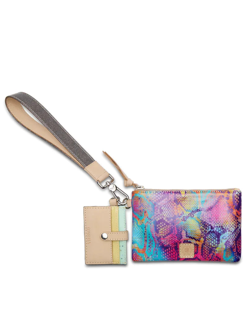 The Combi, a combination of on-the-go accessories, is a new way to carry your keys, cards, and the small stuff together or separately. This colorful wristlet wallet includes a pocket pouch, secure card slot wallet and fits comfortably around your wrist - ready for your next journey.