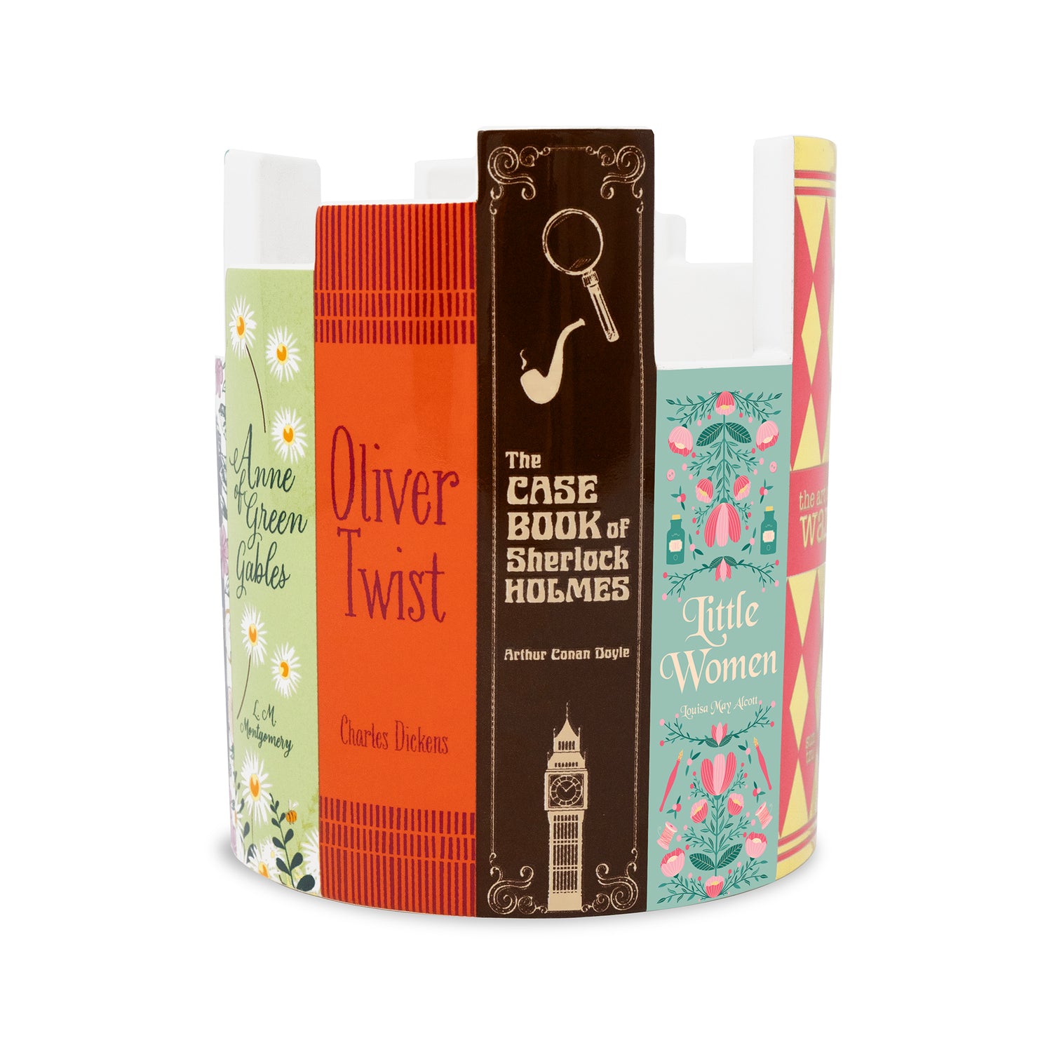 Desk Pot - Classic Books is the perfect addition to any literary lover's workspace. This charming ceramic desk pot features a staggered edge design that beautifully mimics a collection of classic book spines, showcasing beloved titles from Chaucer's The Canterbury Tales to Austen's Pride and Prejudice. Measuring 4 x 4.50 inches, it serves as a stylish solution for organizing office supplies, bookmarks, or even housing your favorite office plant. With its unique bookish charm, the Desk Pot - Classic Books will enhance the aesthetic of any environment, making it a must-have for those who appreciate the written word.