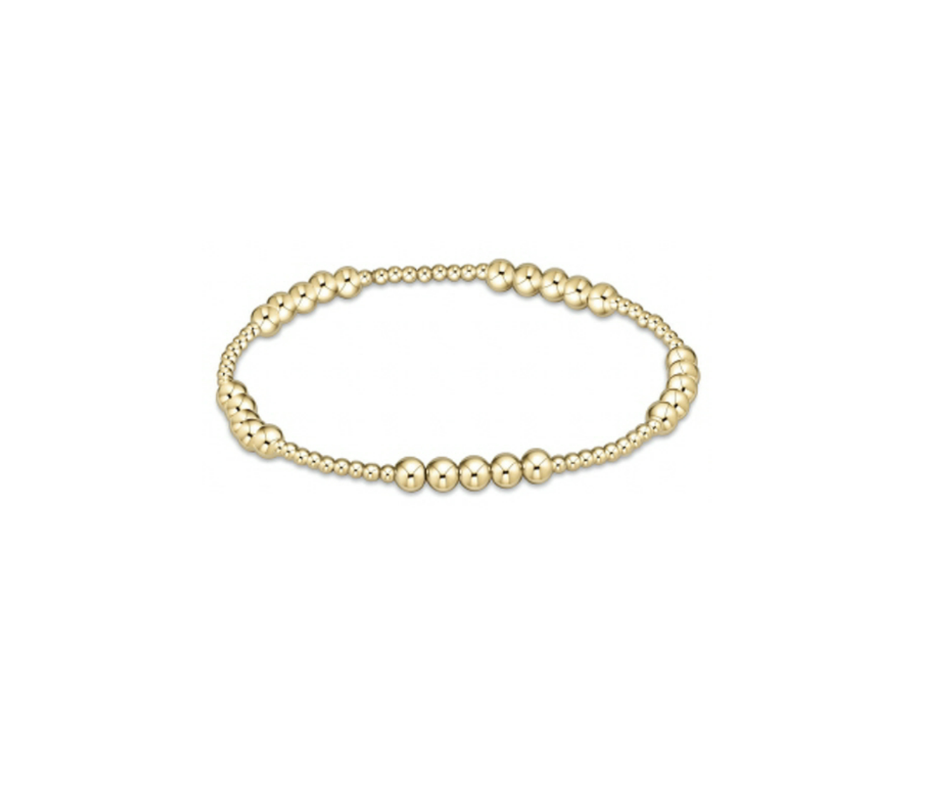 This Enewton - Classic Blissful Gold Bracelet 2mm-4mm is handcrafted with 2mm and 4mm 14k gold-filled beads, measuring at 6.25 inches. Made with high performance elastic, it offers a slight stretch for easy wear. You can enjoy worry-free wear, as it is designed to be worn while sleeping, showering, and sweating.