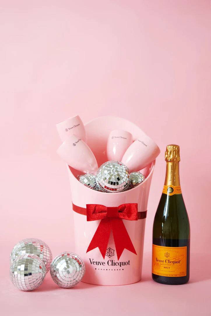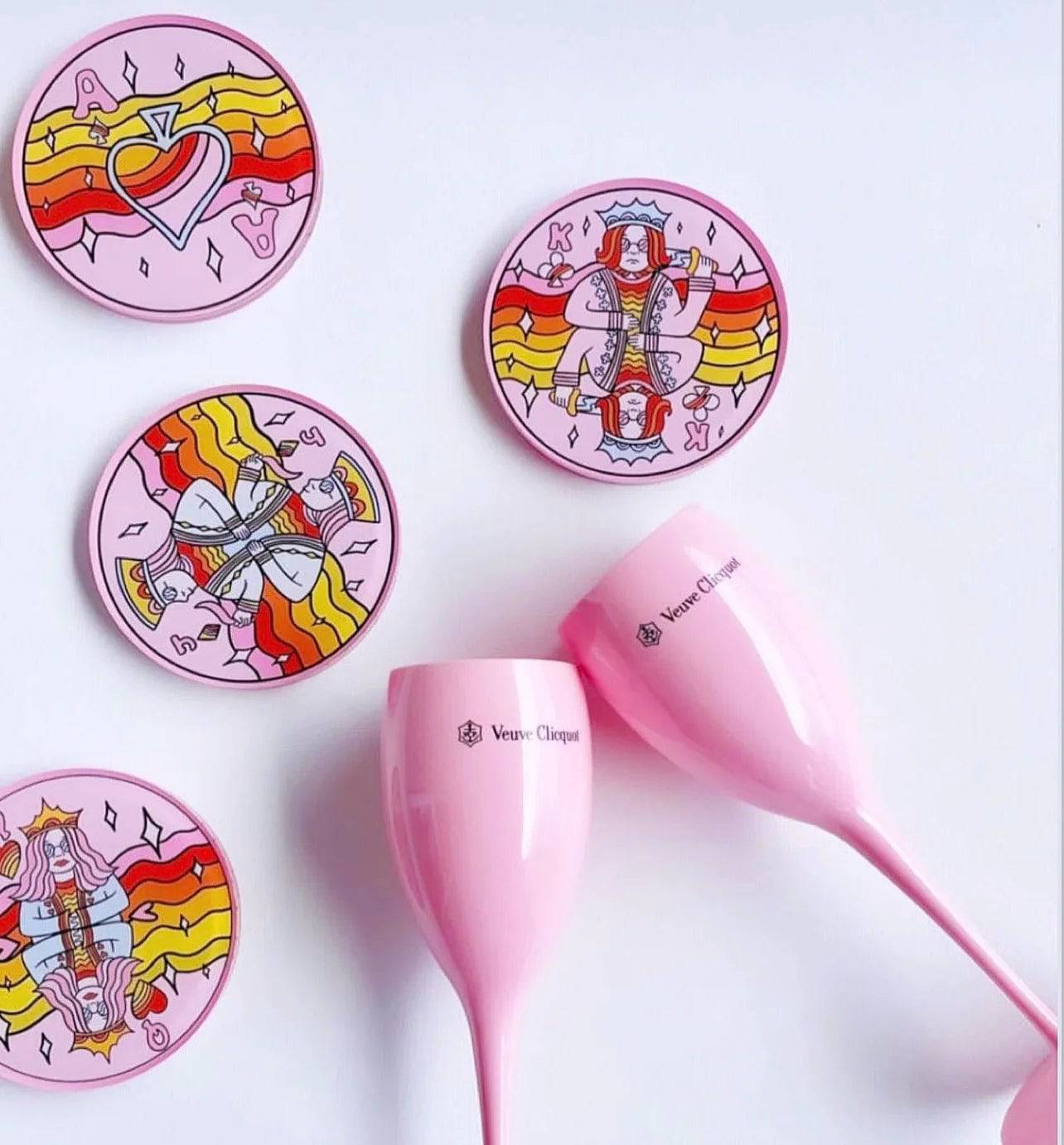 Raise a toast with these Rose All Day Flutes! Crafted with festive plastic Champagne glasses, these two "flutes" are ready to party! Front of the glute features "Veuve Clicquot" so you know you're drinking in style! Slip on your rose-colored glasses and enjoy a splash of bubbly! Perfect for celebrations—or any time you want to feel a bit fizzy! (Wink wink)