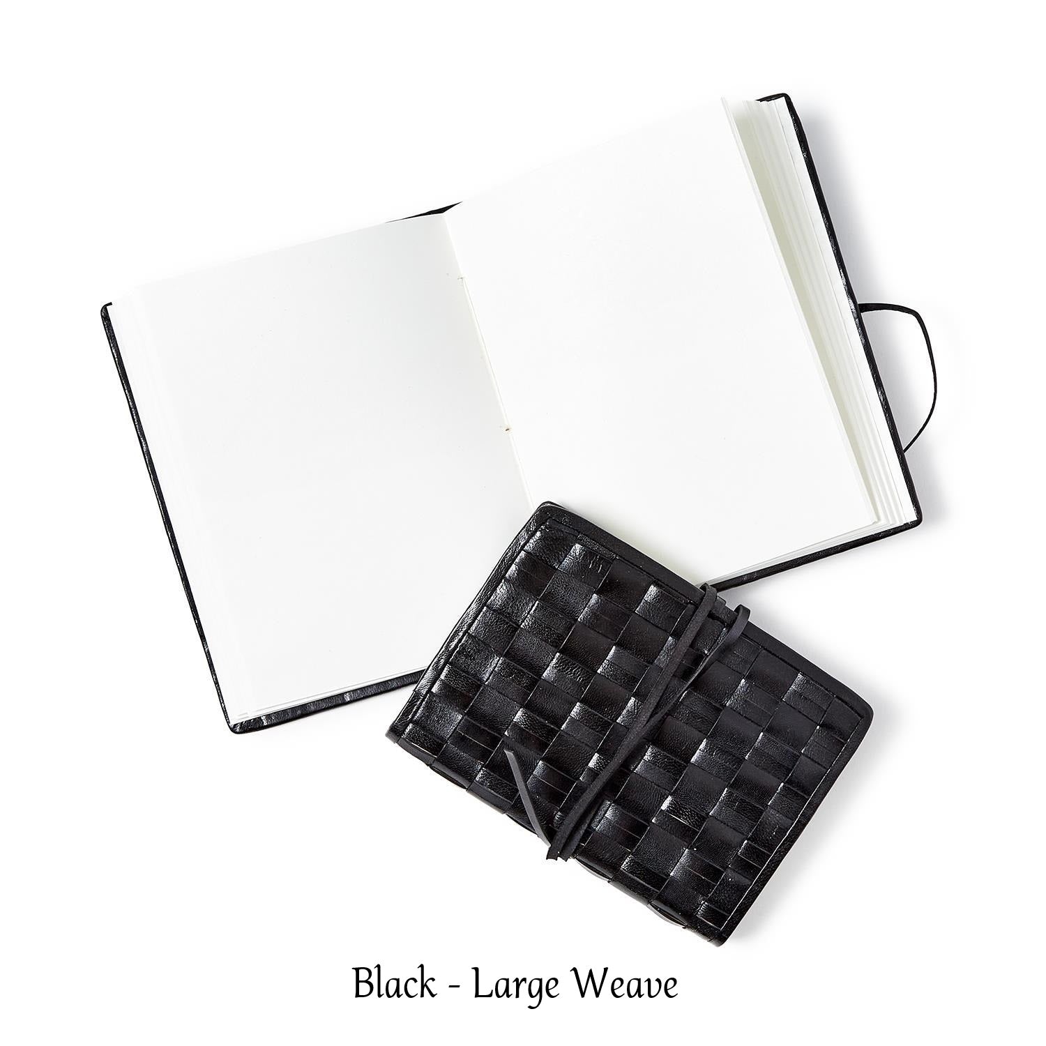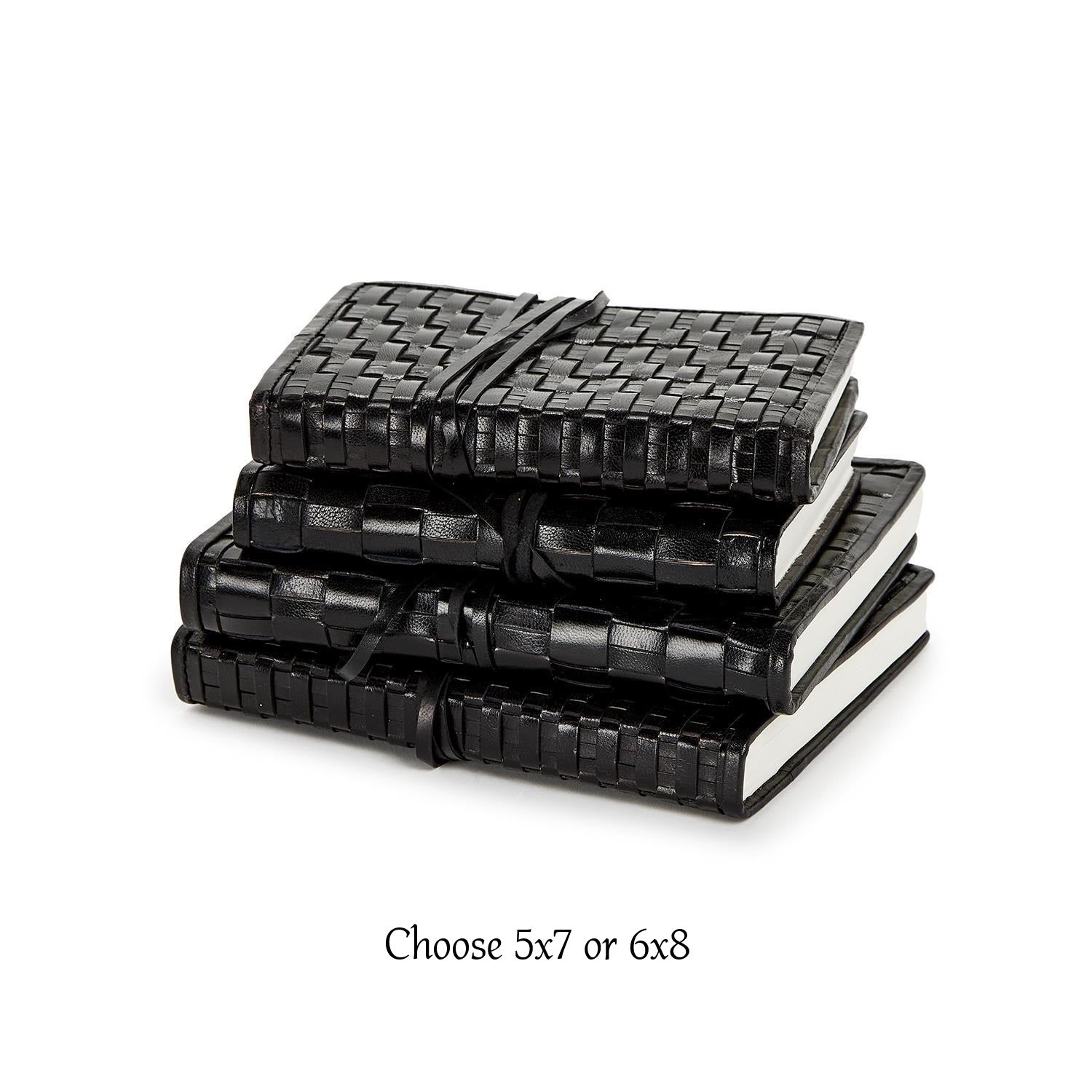 Journal - Woven Leather - Black offers a perfect blend of sophistication and functionality, crafted with meticulous attention to detail. Available in two sizes, 5x7 inch and 6x8 inch, this journal caters to all your writing needs, whether for personal reflection or professional notes. The exquisite woven leather patterns not only enhance its aesthetic appeal but also ensure durability, making it a luxurious addition to your writing accessories. Inside, you will discover 84 unlined pages of handmade paper, providing ample space for your thoughts, sketches, and ideas to flow freely, encouraging creativity without boundaries. Minor imperfections and variations are a natural characteristic of the high-quality materials and hand-crafted origin, adding to the unique charm of each journal. Experience the elegance of the Journal - Woven Leather - Black today.