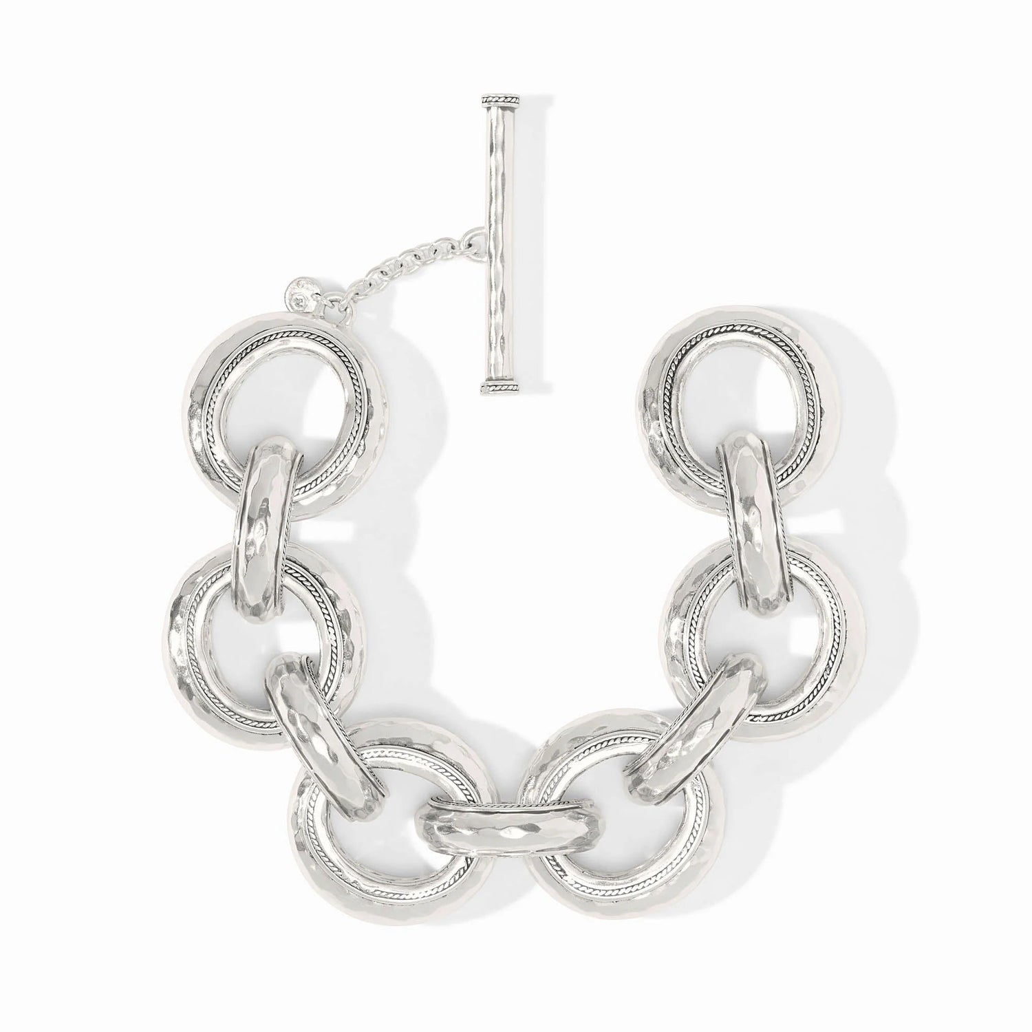 Discover the exquisite charm of the Julie Vos - Bracelet - Cannes Link - Silver, crafted from pure silver that remains tarnish-free for lasting beauty. This stunning bracelet is available in two sizes: a regular measure of 9 inches and a long measure of 10.25 inches, both featuring a width of 1.2 inches for a comfortable fit. The bracelet closes securely with a toggle, ensuring it stays in place while you wear it. Adorned with the signature Julie Vos hallmark, this piece is a perfect addition to any jewelry collection, offering a blend of elegance and sophistication. Make a statement with the Julie Vos - Bracelet - Cannes Link - Silver today.