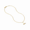 Discover the exquisite Julie Vos - Necklace - Bamboo Delicate, a stunning piece that beautifully combines elegance and symbolism. Crafted with a 24K gold plate, this necklace features a delicate bar chain adorned with a charming bamboo pendant, representing longevity and success, capped with lustrous glass pearls. The adjustable length of 16.5 to 17.5 inches ensures a perfect fit, while the secure lobster clasp adds convenience to your wear. Adorn yourself with this timeless accessory that embodies sophistication and grace, making it an ideal addition to any jewelry collection. Julie Vos - Necklace - Bamboo Delicate is a must-have for those who appreciate fine craftsmanship and meaningful design.