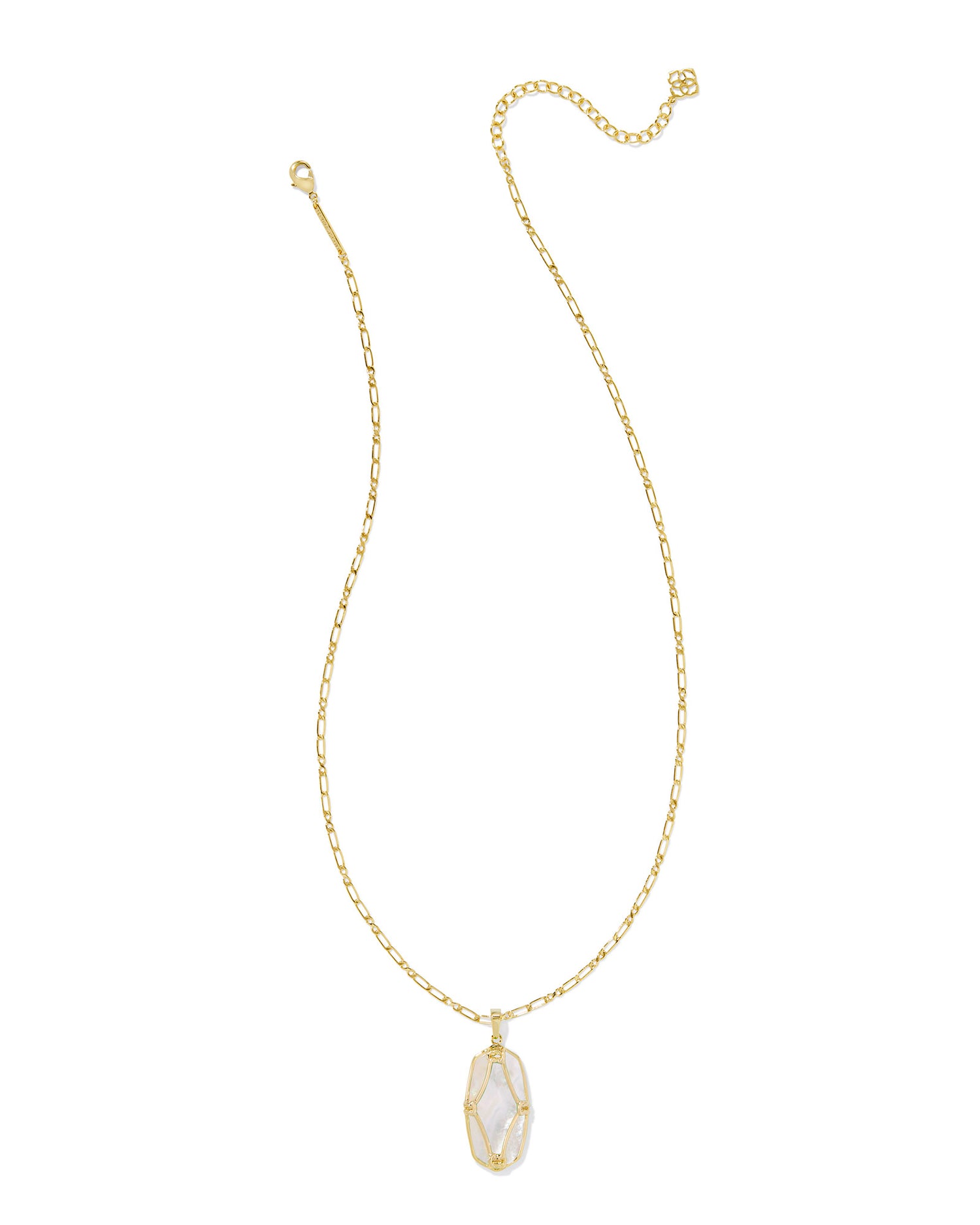 Kendra Scott - Necklace - Elle Lattice Frame Gold Large Long Pendant Necklace - Ivory Mother of Pearl