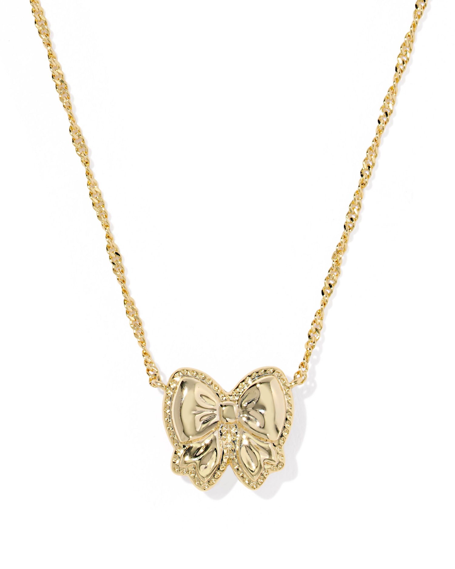 The Kendra Scott - Necklace - Haley Bow Short Pendant - Gold Rose Violet Mother Of Pearl is the perfect accessory to complete any outfit. Featuring our signature hoofprint detailing and custom-carved mother-of-pearl, this exquisite necklace showcases a reversible pendant that offers double the styling options, making it a versatile addition to your jewelry collection. With a 16-inch chain and a 3-inch extender, the pendant measures 0.67 inches in length and 0.56 inches in width, ensuring a comfortable fit for any occasion. Don't miss out on this must-have piece that combines elegance and functionality effortlessly.