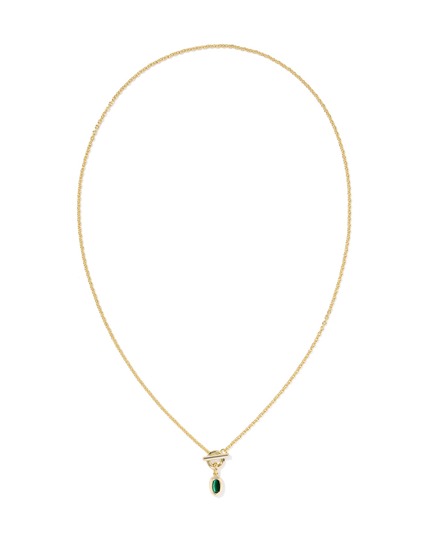 Kendra Scott - Necklace - Mini Elisa Toggle Short Pendant - Gold Green Tigers Eye