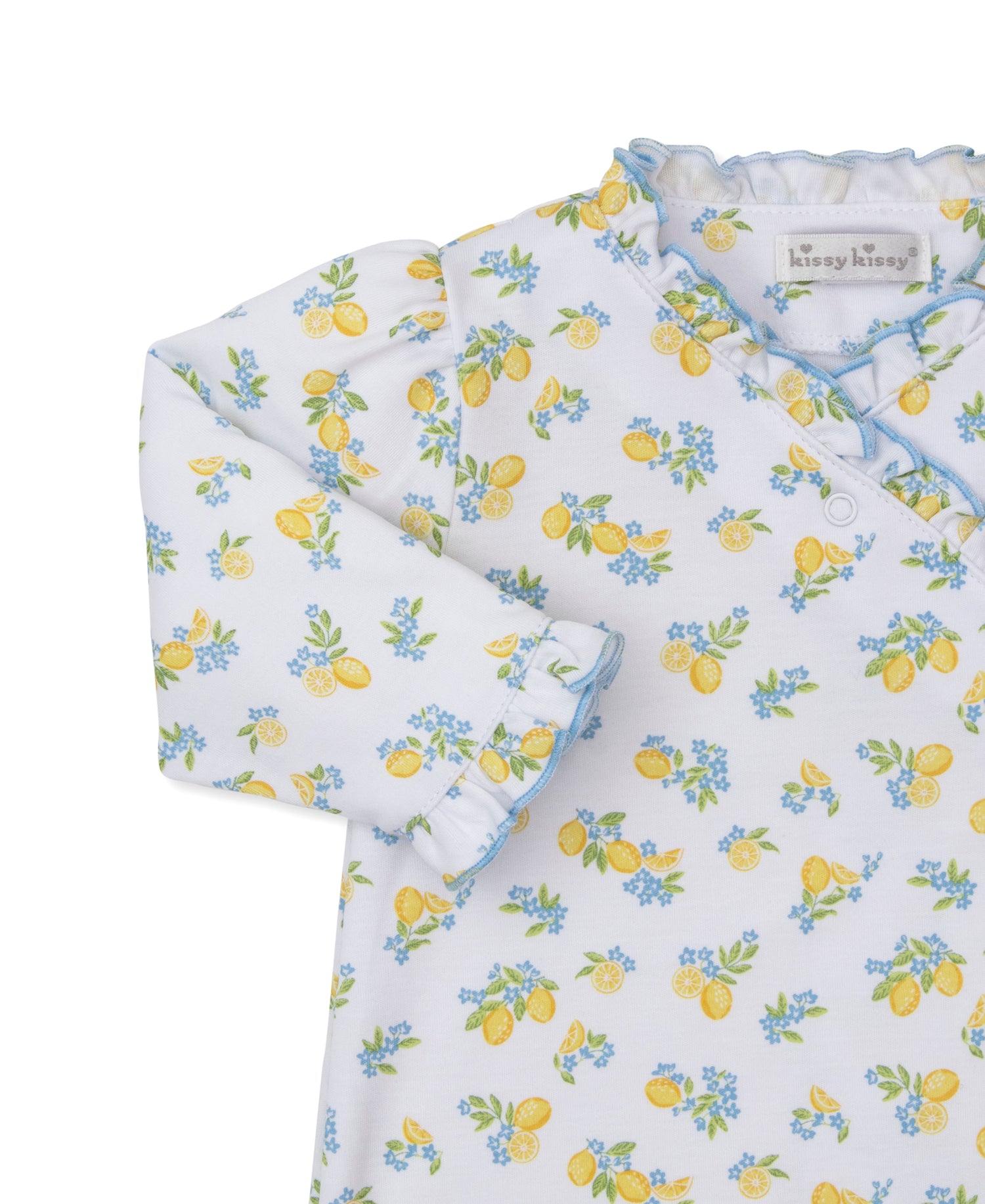 Wrap your little one in the luxurious comfort of the Kissy Kissy - Sack - Lemon Blossoms romper, crafted from 100% Pima cotton for an incredibly soft and gentle fit against delicate skin. Made in Peru, this romper features an elasticized hem and bottom to ensure a snug fit while allowing for easy changes, thanks to the convenient snap closure at the legs. The exquisite Peruvian Pima cotton not only provides durability with its longer fiber length but also gives the fabric a slight luster, enhancing its luxurious texture. Perfect for any occasion, this charming Kissy Kissy - Sack - Lemon Blossoms will keep your baby girl looking adorable and feeling comfortable all day long.