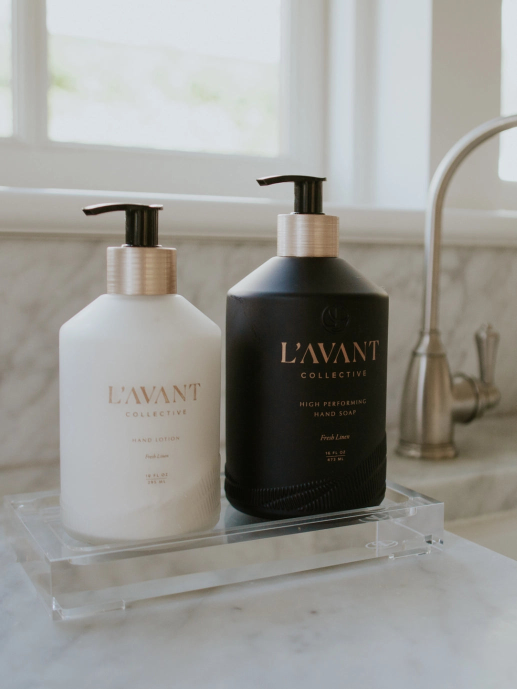 The L'Avant - Lucite Tray - Medium is a stunning addition to your home decor, crafted from premium-quality luxury acrylic that exudes sophistication. With dimensions of 7.5 x 4.2 x 1 inches, this tray is designed to accommodate two of our L'AVANT pieces, making it perfect for placement on a sink, vanity, or side table. Its minimalist design ensures compatibility with any décor, while the thick sides and base provide exceptional durability and stability. Enhance your space with the refined elegance of the L'Avant - Lucite Tray - Medium, a versatile piece that seamlessly blends into your surroundings.