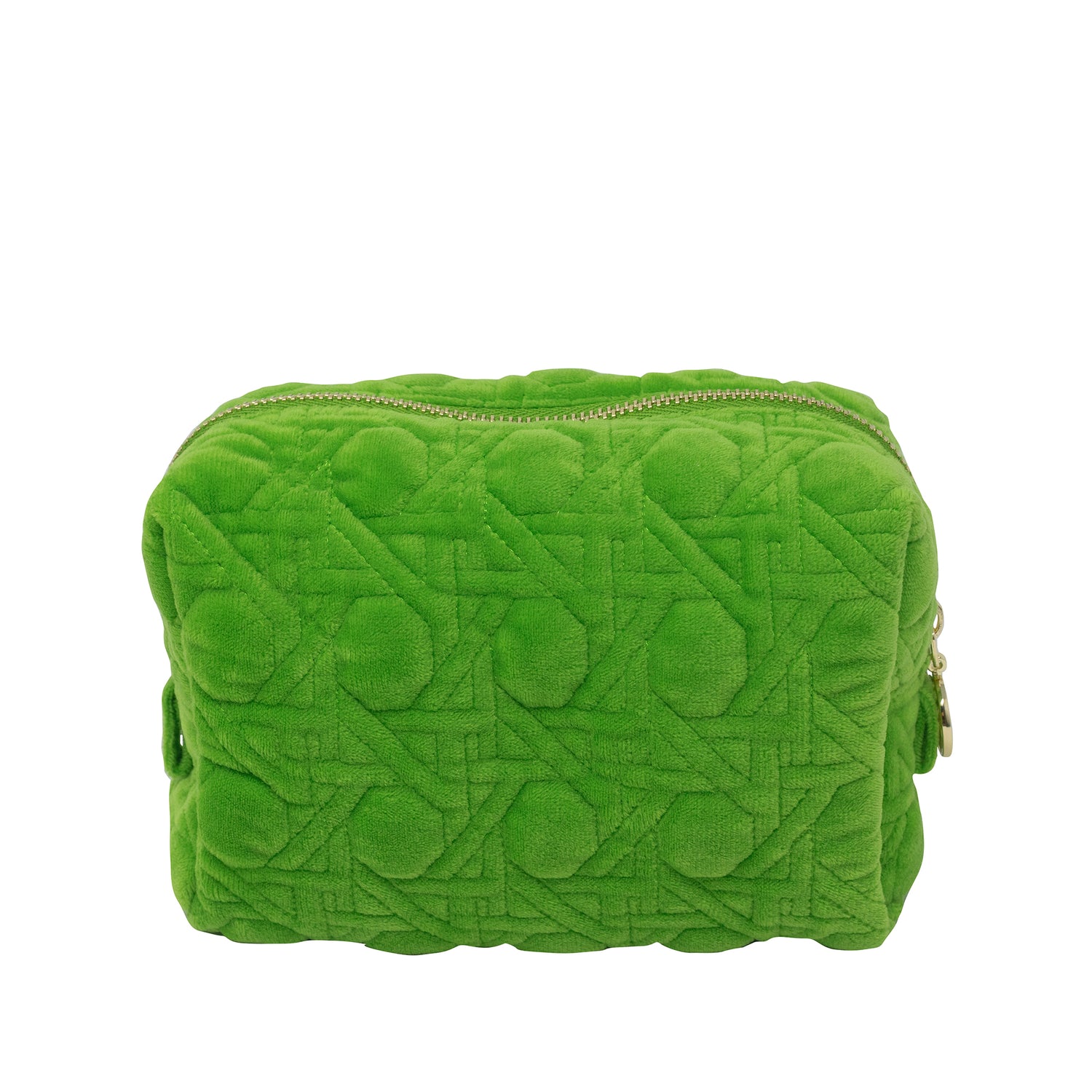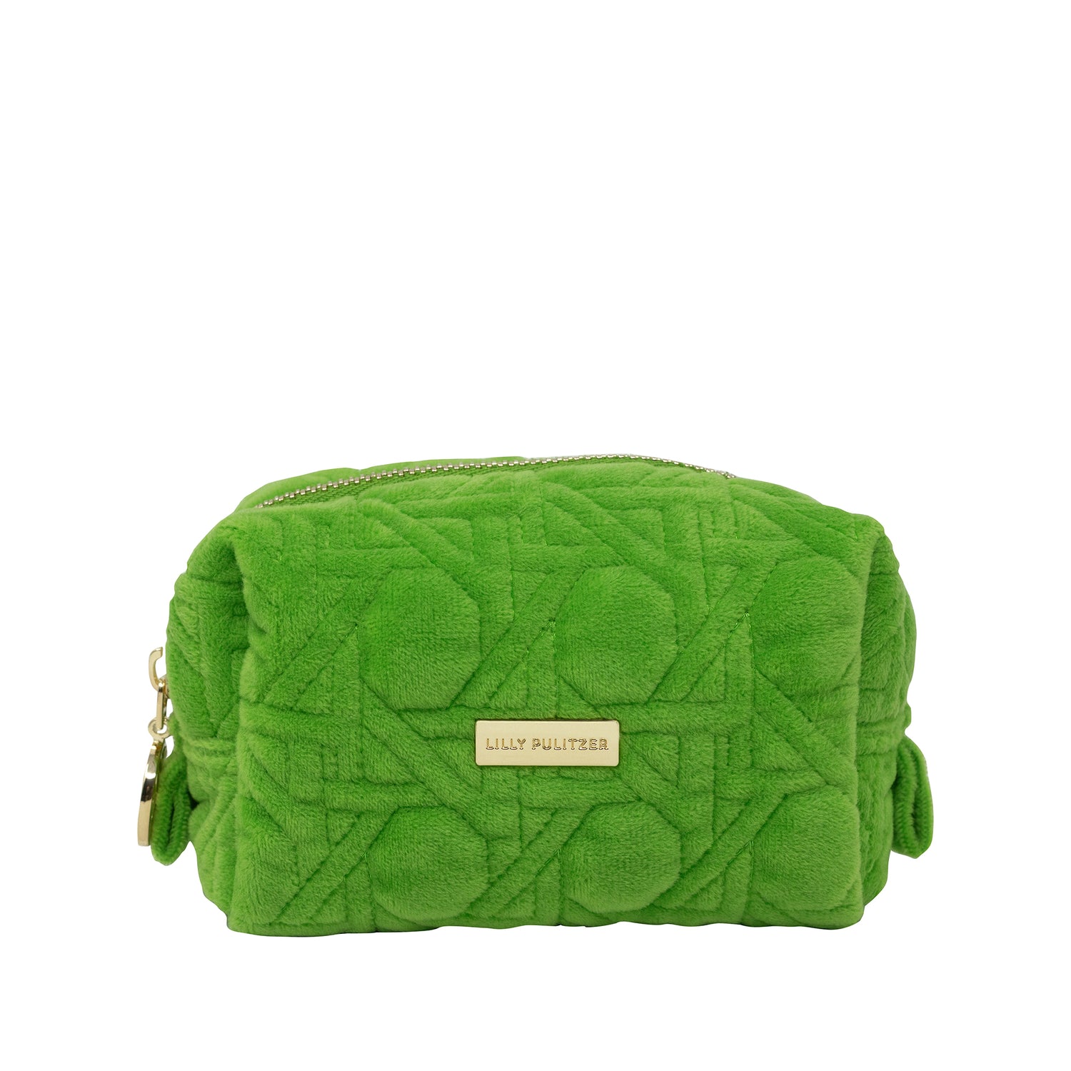 Keep your essentials organized in style with the Lilly Pulitzer - Travel Pouch - Peninsula Green. This chic travel pouch features a luxurious quilted velvet fabric in a stunning Peninsula Green hue, complemented by elegant gold bamboo zipper pulls. Designed for durability, the exterior is stain-resistant and easy to clean, ensuring it withstands the rigors of travel trip after trip.