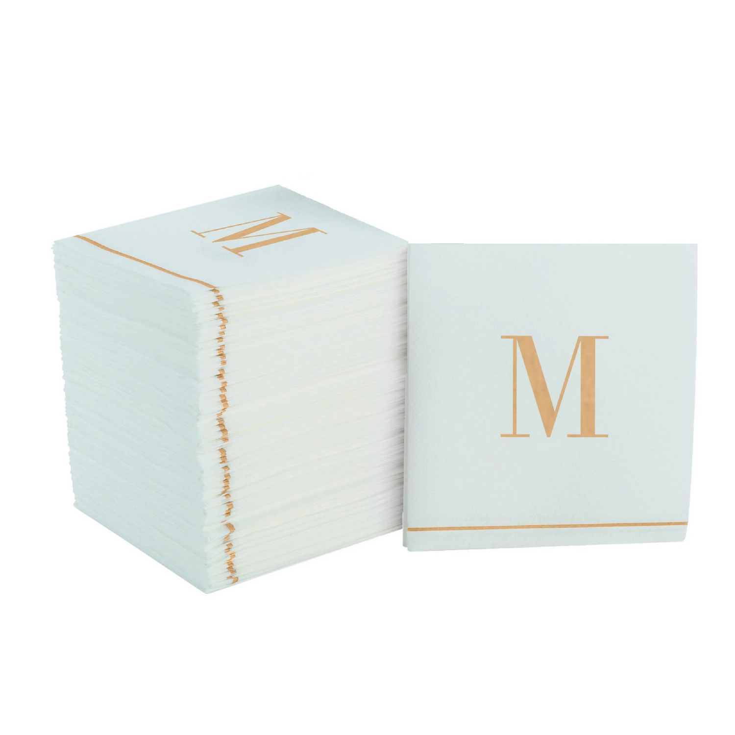 Luxe Party - Cocktail Napkins - White Gold Monogram