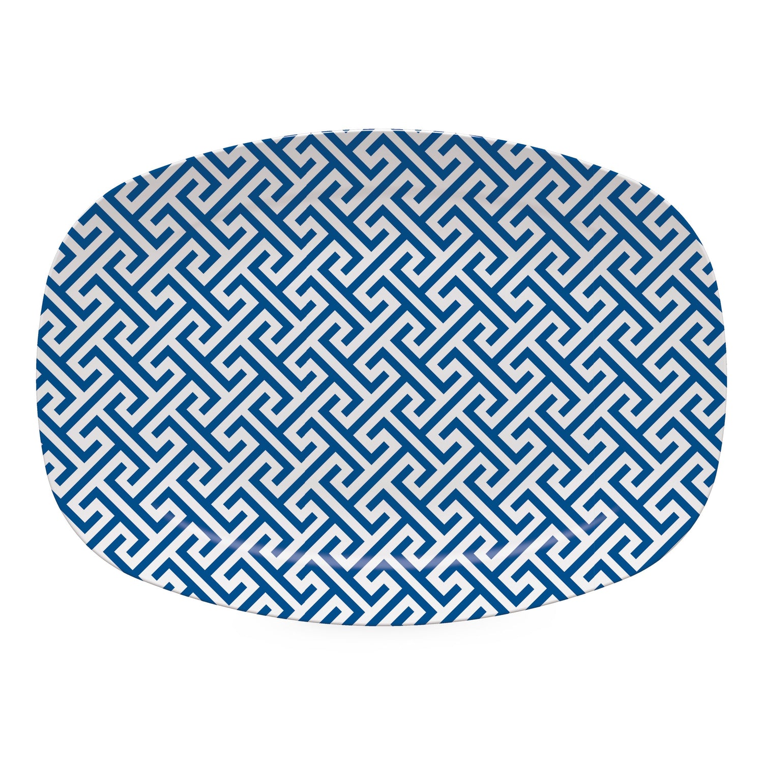 Discover the perfect blend of timeless elegance and contemporary design with the Mariposa - Fretwork Platter - 10x14. This stunning platter features a striking blue and white Greek key pattern that beautifully complements your table. Crafted to be more than just melamine, this platter is microwave, oven, and dishwasher safe, making it a practical choice for any kitchen. It is also BPA-free, formaldehyde-free, and FDA approved for food safety, ensuring peace of mind with every use. Proudly made in the USA, the Mariposa - Fretwork Platter - 10x14 measures 14 inches in length, 10 inches in width, and 0.75 inches in height, making it an ideal centerpiece for your dining experience.
