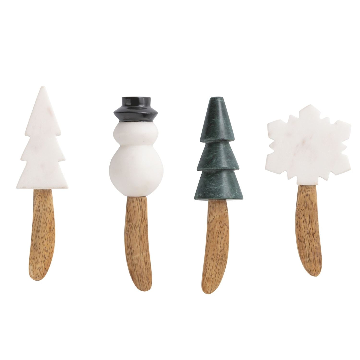 Add a touch of festive charm to your holiday gatherings with the Mud Pie - Christmas Marble Spreaders. Crafted from beautiful mango wood, each spreader features a stunning figural marble handle that embodies minimalistic elegance, making it a true work of art. Measuring 5 1/2 inches, these spreaders are perfect for serving your favorite spreads and dips. Choose from delightful designs including a Snowman, Snowflake, White Flat Tree, or Green Dimensional Tree to complement your holiday décor. The Mud Pie - Christmas Marble Spreaders are not just functional; they are a stylish addition to your festive tableware that will impress your guests.