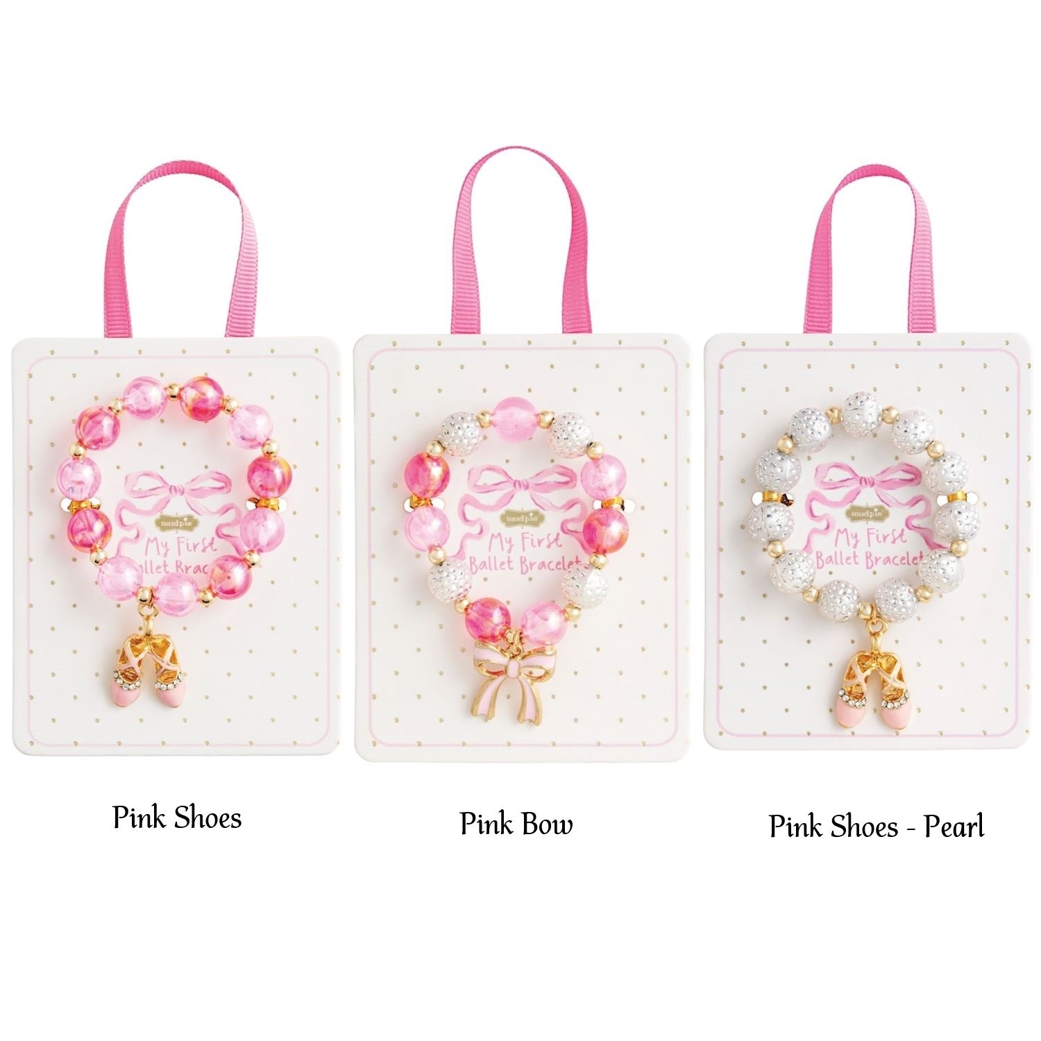 Mud Pie - My First Ballet Bracelet is the perfect accessory for your little dancer. This charming collection features three delightful styles, each adorned with a pink bow and designed for ages 3 and up. Choose from the bead stretch bracelet with an enchanting Pink Ballet Shoe Charm, a playful Pink Bow Charm, or a sophisticated Pearl bracelet with a Pink Ballet Shoe Charm. Each bracelet not only adds a touch of elegance to any outfit but also inspires a love for ballet and dance. Make every moment special with Mud Pie - My First Ballet Bracelet.