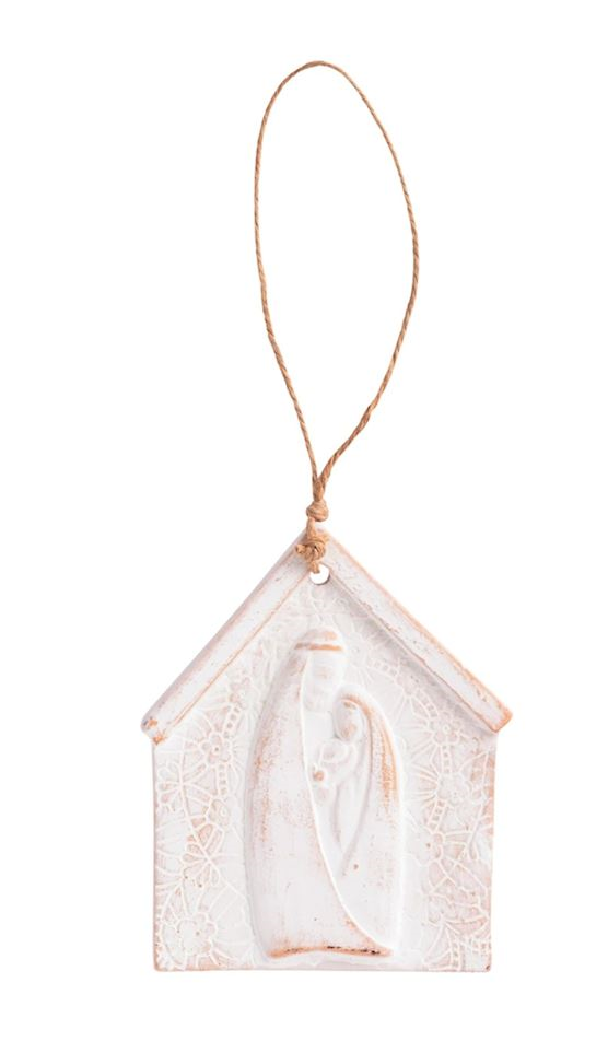 Add a touch of warmth and spirituality to your holiday decor with the Mud Pie - Ornaments - Nativity Lace. Each terracotta ornament features a beautifully layered Nativity scene icon, complemented by intricate pressed lace textural details. Measuring approximately 4" x 3.5", these charming ornaments come with a rustic twine hanger, making them perfect for adorning your tree or as a thoughtful gift. Choose from three heartfelt designs: Baby Jesus, Holy Family Embrace, or Jesus is Born, each one capturing the essence of the season. The Mud Pie - Ornaments - Nativity Lace are not just decorations; they are a celebration of faith and family.