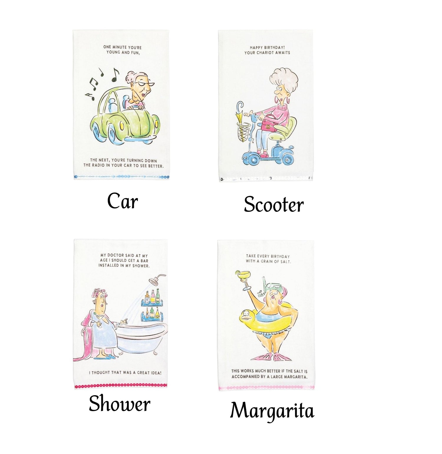 Choose from Car, Scooter, Shower, and Margarita,