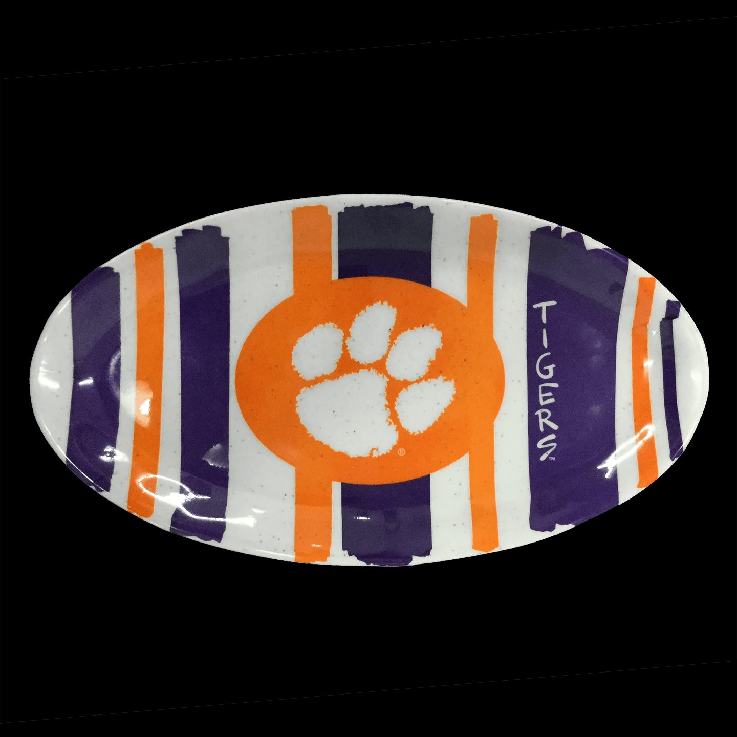 Be sure to show of your Tiger Pride at your next Clemson football tailgate or watch party with this Oval Striped Clemson Tigers Melamine Platter!