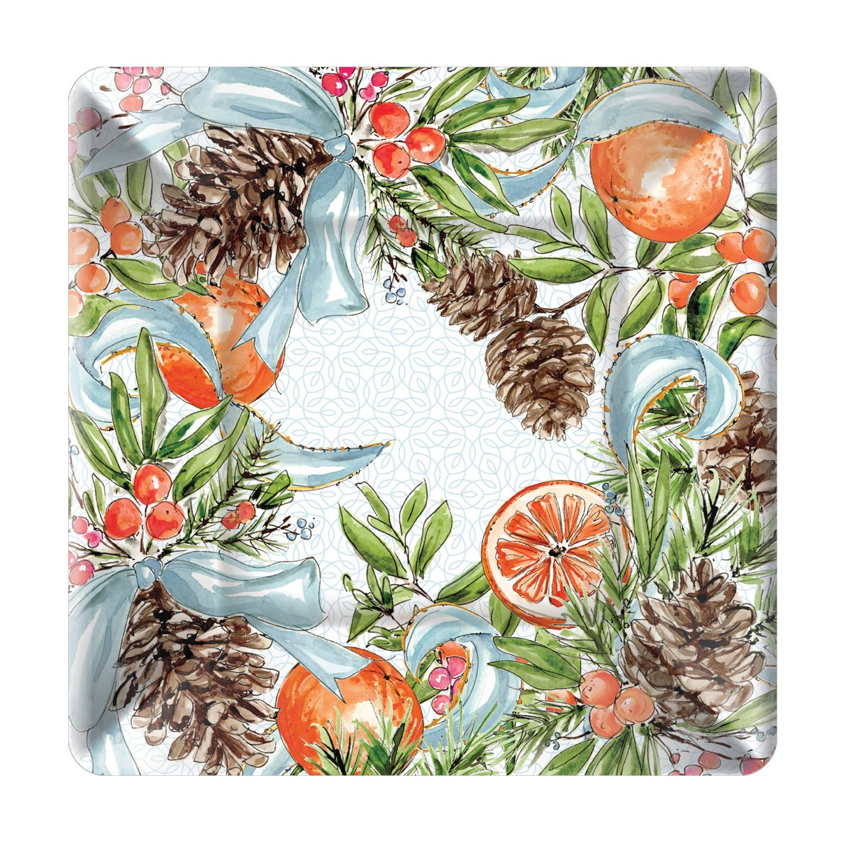 Pinecones & Ribbons Square Paper Dinner Plates.