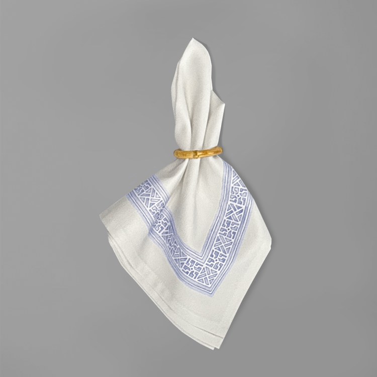 Discover the Ramsay Gourd Home - Cloth Napkins - Pagoda Indigo, a stunning addition to your dining experience. Crafted from a luxurious blend of 55% linen and 45% cotton, these 20” x 20” napkins feature an elegant blue and white design that adds a touch of sophistication to any table setting. Sold as a set of four, they are perfect for both casual meals and formal gatherings. Easy to care for, simply machine wash warm and tumble dry on low heat, or opt for dry cleaning for a polished finish. Our textiles are custom printed and may vary in dye lot. Enhance your dining decor with the Ramsay Gourd Home - Cloth Napkins - Pagoda Indigo today.