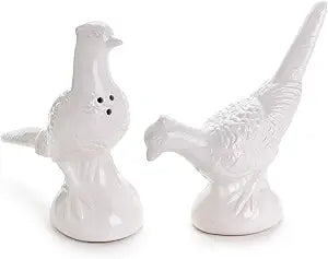 Enhance your dining experience with this charming Salt and Pepper Shaker Set - Pheasant, featuring two elegant white ceramic birds gracefully perched. Crafted from durable dolomite, these shakers are designed with convenient holes at the bottom for easy filling and are perfect for adding a touch of whimsy to your Thanksgiving table or any occasion throughout the year. Measuring 3.5 in W x 1.5 in D x 3.25 in H and 3.5 in W x 1.5 in D x 3.5 in H, this delightful set is hand wash only and comes beautifully packaged in a gift box, making it an ideal hostess gift. The Salt and Pepper Shaker Set - Pheasant is not only functional but also a stylish addition to your home decor.