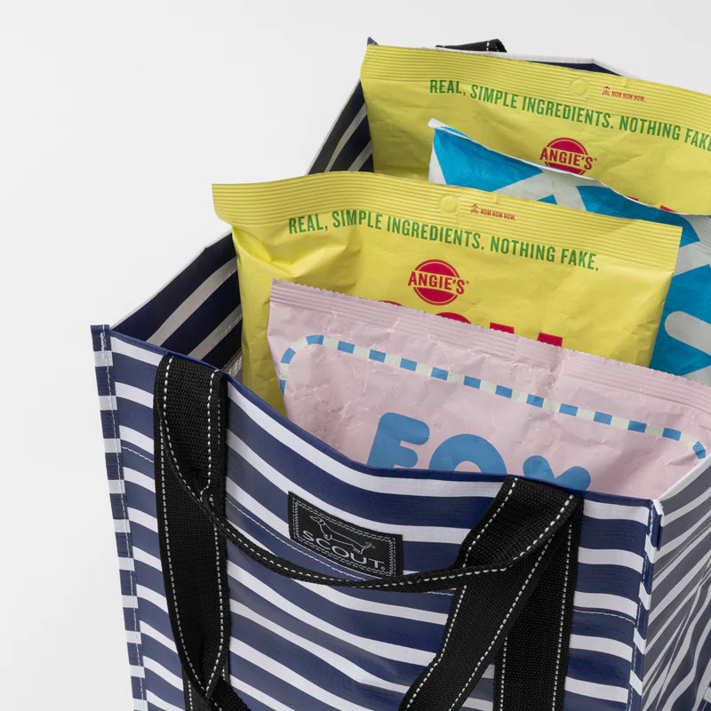 The SCOUT - Bagette - Candy Striper is the ultimate solution for your grocery shopping needs, offering double the capacity of standard grocery bags. Crafted with durability in mind, this stylish bag features a spacious square bottom and a reinforced structure that can support up to 75 lbs, making it ideal for heavy loads. With two sets of straps designed for both hand and shoulder carry, it ensures comfort and versatility during use. Weighing only 0.8 lbs, the Bagette conveniently folds flat for easy storage in your car trunk, ready for any shopping trip. Elevate your grocery experience with the SCOUT - Bagette - Candy Striper and enjoy the compliments from fellow shoppers.