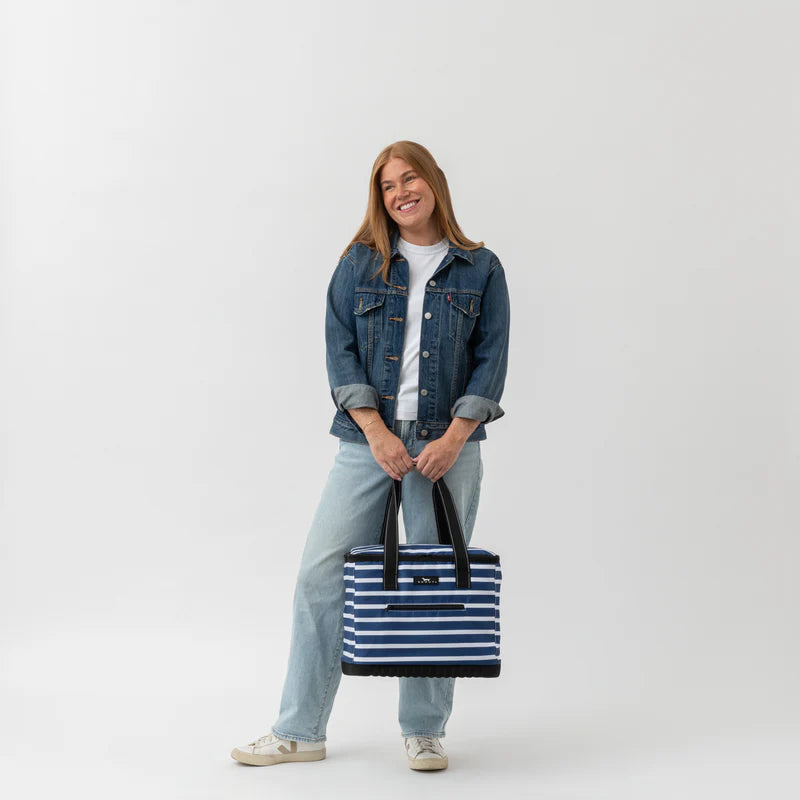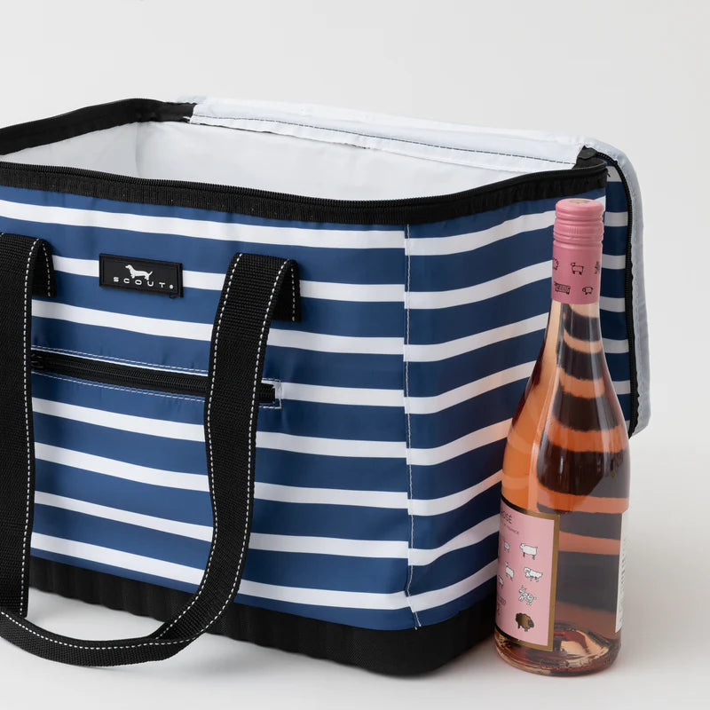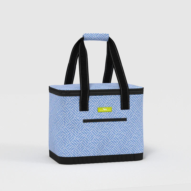 SCOUT - The Stiff One - Twisted Sister is the ultimate solution for your outdoor gatherings, designed to accommodate a full 24-pack plus ice with ease. This large soft cooler features a hard, reinforced bottom that ensures stability on any surface, including sand, while the easy-clean, water-resistant fabric keeps it looking fresh. With a zipper closure, your food and drinks stay cooler for longer, and the wrapped, reinforced handles make transportation a breeze. Two exterior pockets, one zip and one slip with Velcro, provide convenient storage for a bottle opener and utensils. Measuring 14.25W x 12.5H x 9D, SCOUT - The Stiff One - Twisted Sister is perfect for any adventure.