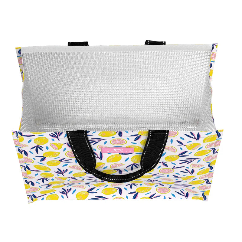 The Scout - Thermal and Louise - Zest in Show is designed to keep your items at the perfect temperature, whether you need to keep your milk cold or your rotisserie chicken warm. This durable, insulated market tote features a snug velcro closure and a thermal liner, ensuring optimal temperature retention. With dimensions of 15.5 inch W x 14.5 inch H x 8 inch D, its lightweight fabric and slim profile make it easy to transport from checkout to car to counter. Additionally, the exterior slip pocket provides convenient storage for smaller items, and the tote conveniently folds flat for easy storage when not in use. The Scout - Thermal and Louise - Zest in Show is the ideal companion for your shopping needs.