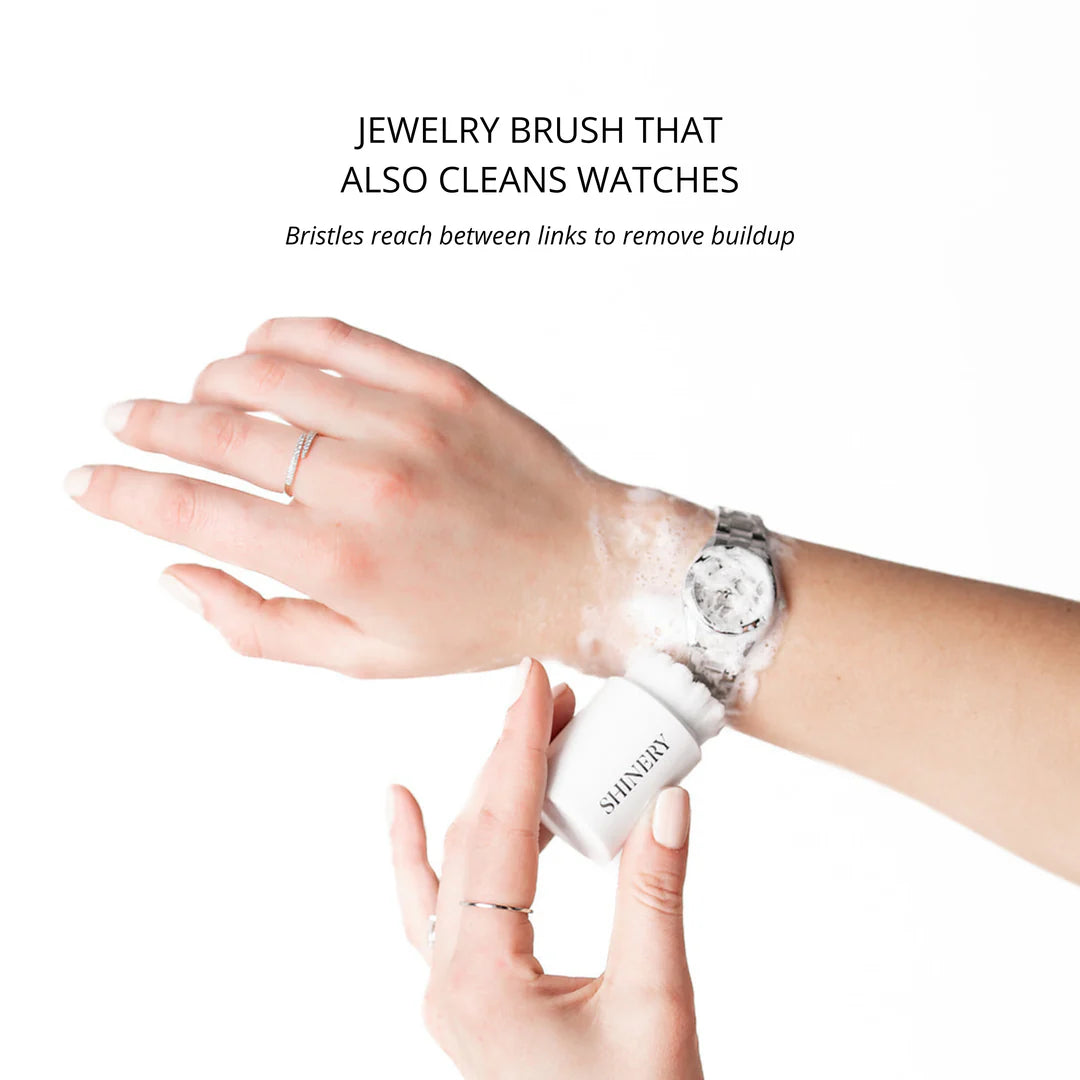 Shinery - The Radiance Brush is your jewelry's daily beauty routine, meticulously crafted to care for your most treasured pieces. With ultra-soft and flexible bristles, this brush effortlessly removes buildup, reaching intricate settings and hard-to-access areas with ease. Designed for comfort and precision, the Radiance Brush ensures a gentle yet effective clean, making it safe for all metals and gemstones, including rings, necklaces, bracelets, earrings, and watch bands. Simply wet the brush under the sink, apply the Jewelry Wash directly onto the bristles, and gently scrub your jewelry to produce a rich lather. Rinse both the jewelry and brush with water, then pat dry with a soft cloth for a radiant finish. Shinery - The Radiance Brush is not just a cleaning tool; it embodies the essence of luxury jewelry care, making it an essential addition to your routine.