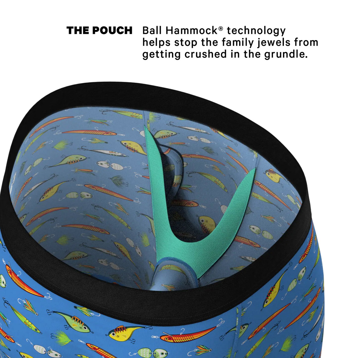 Experience unparalleled comfort and support with the Shinesty - Pouch Underwear - Bait and Tackle - Medium. Designed with a unique pouch that keeps everything in place and off your legs, this underwear is crafted from the softest fabric around, featuring a luxurious blend of 95% MicroModal and 5% Spandex. The moisture-wicking and breathable material ensures you stay cool and dry throughout the day. Our proprietary knitting process delivers more sumptuous Modal per square inch, resulting in a softer, better-fitting, and more durable product than the competition. With an 6-inch inseam, this underwear offers a lightly compressive fit through the legs to prevent ride-up, while providing extra space and support for your essentials. The quick-access fly, anti-ride up legs, tagless design, and silky-soft waistband make this a must-have addition to your wardrobe. Choose the Shinesty - Pouch Underwear - Bait and Tackle - Medium for a perfect fit that prioritizes comfort and functionality.
