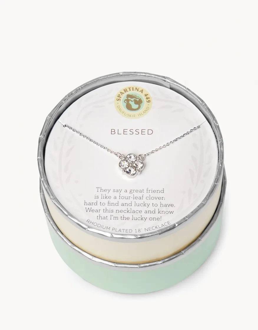 BLESSED: They say a great friend is like a four-leaf clover: hard to find and lucky to have. Wear this necklace and know that I am the lucky one!