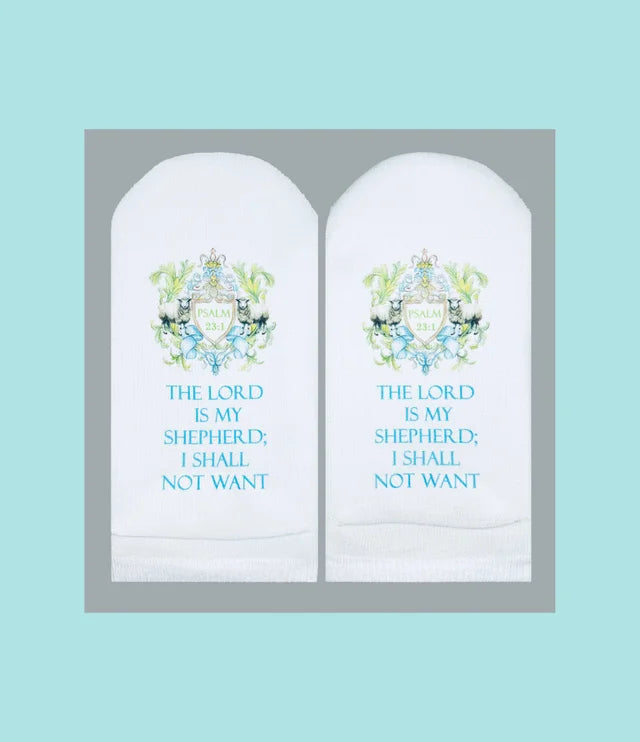 Experience comfort and inspiration with the Standing on the Word - Socks - Lord is My Shepherd. Designed to fit women's shoe sizes 6-10, these no-show socks are perfect for everyday wear while showcasing a beautiful sheep crest design. The sole features the uplifting verse from Psalms 23:1, reminding you that the Lord is your shepherd and you shall not want. Proudly made in America, these socks combine quality craftsmanship with a meaningful message, making them a thoughtful gift for any occasion. Step into faith and comfort with the Standing on the Word - Socks - Lord is My Shepherd.